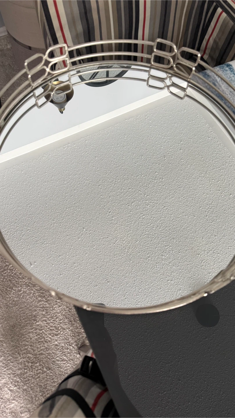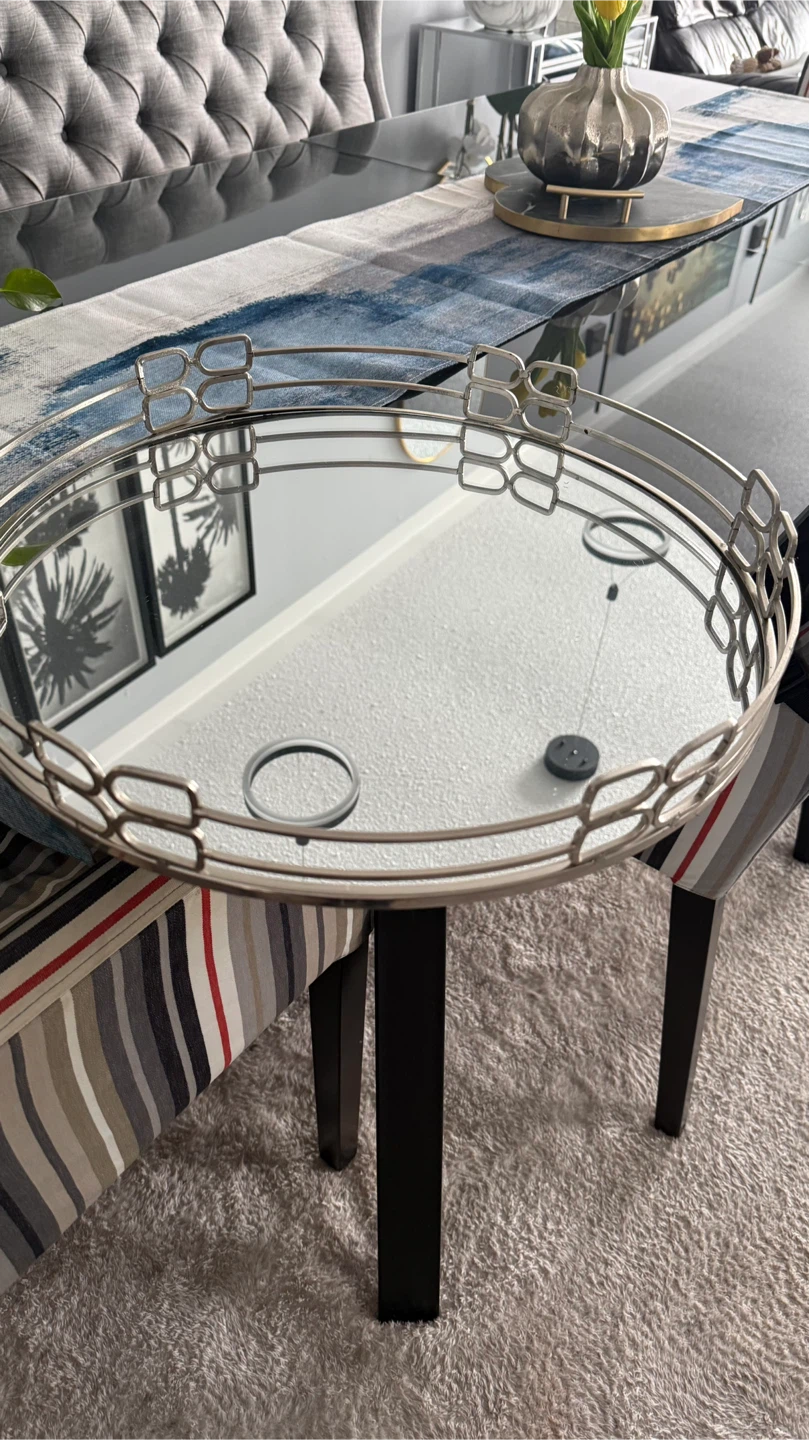 Selling a stylish silver mirrored serving tray! It's perfect for adding a touch of elegance to your home decor or for serving guests. The mirrored surface reflects light beautifully, and the silver finish complements any setting