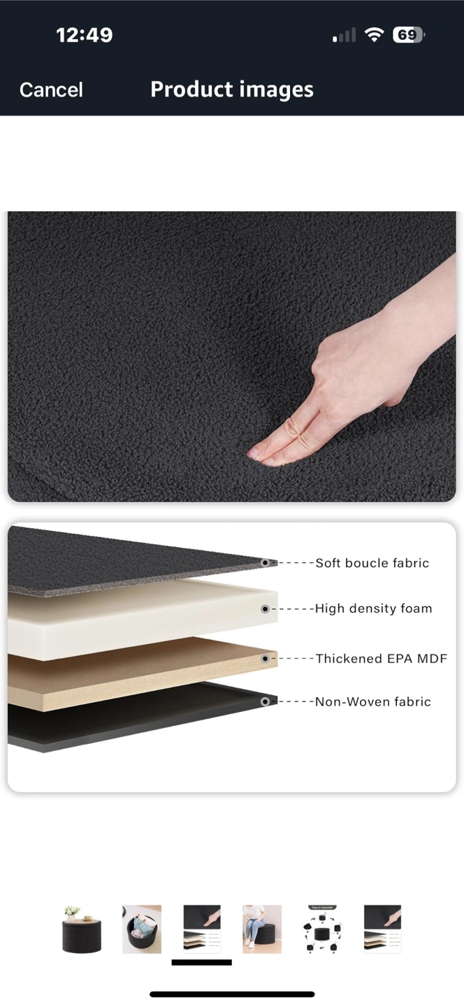 Multi-functional storage ottoman. Features soft boucle fabric, high-density foam, and thickened MDF. Easy to assemble. Great as extra seating or a stylish storage solution.