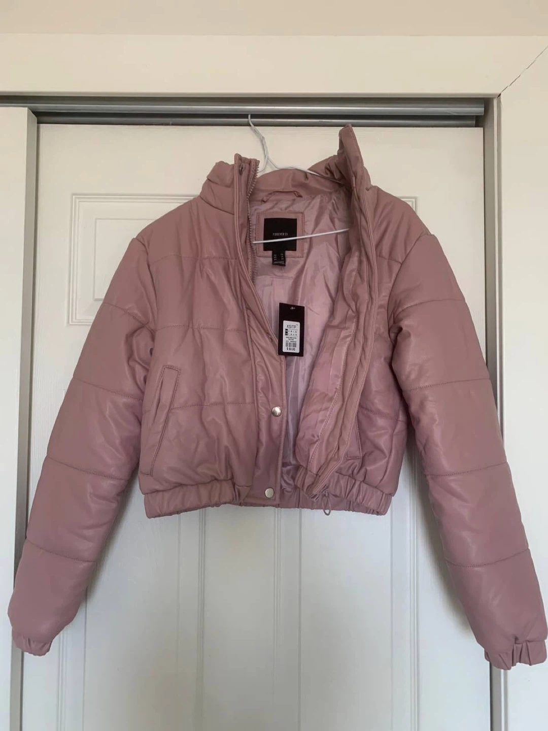 Selling a brand new Forever 21 puffer jacket. It's a size XS and comes in a lovely pink colour. Perfect for adding a bit of warmth and style to your wardrobe!