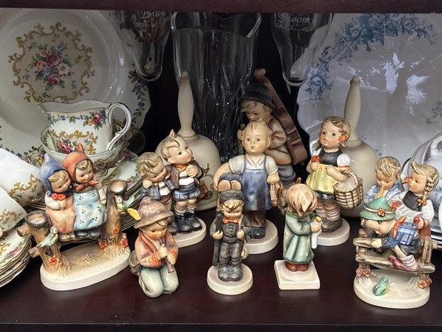 A set of 12 original Hummel figurines, with some pieces dating back to the 1940s. All are in excellent condition, with no chips or scratches. These are vintage collectibles.