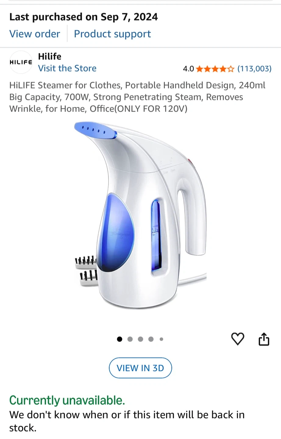 HiLIFE steamer for clothes is designed for use with 110 volt outlets and is available in the United States and Canada. However, if the power supply is not 110 V, we recommend using an adapter. Please check the User Manual to troubleshoot the problem if the steamer doesn’t work.