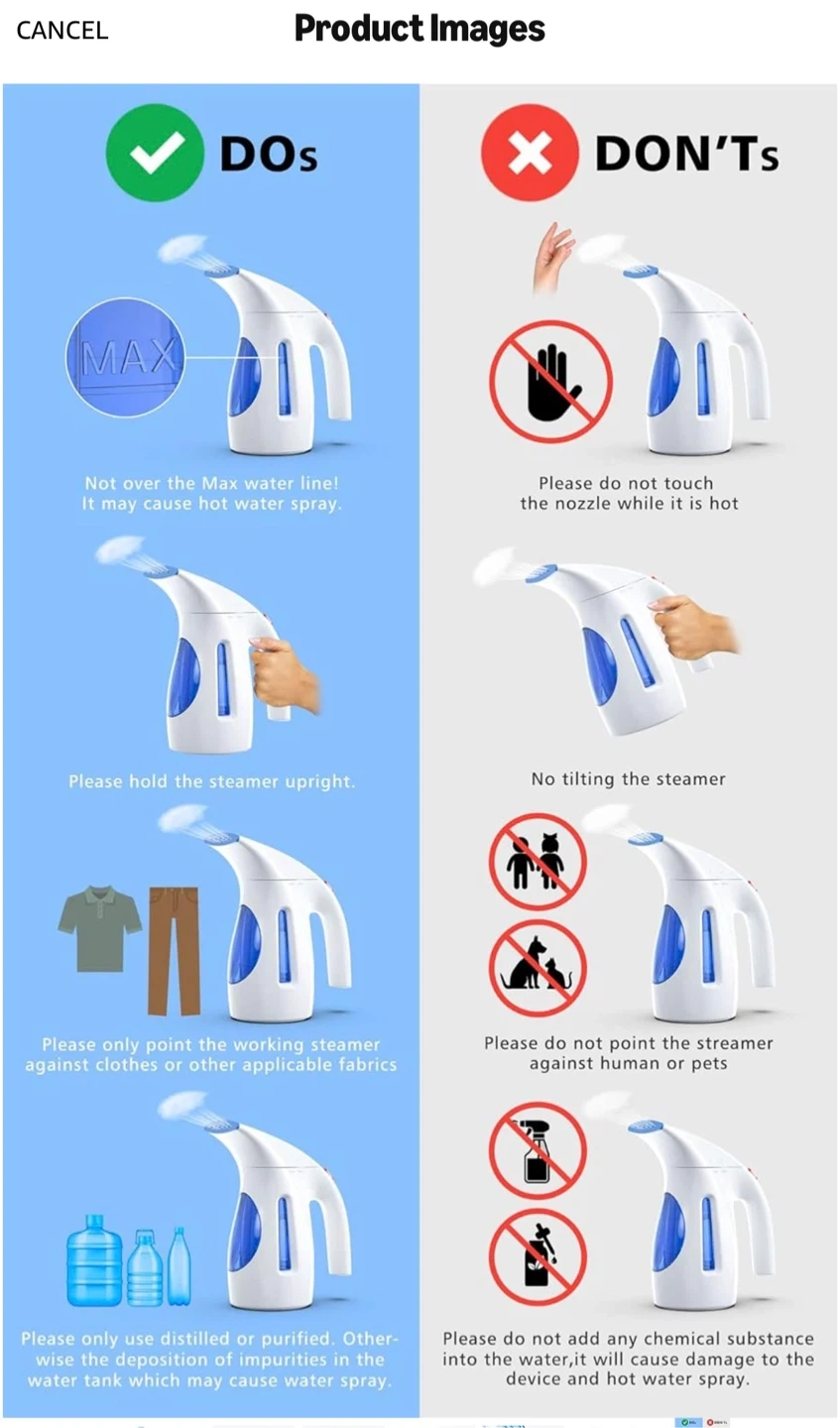 [Easy to Use] This steamer generates gentle, long-lasting steam and has a 9- foot power cord, so you'll never have. Note: Never turn the unit upside down or tilted your steamer past a 45-degree angle. to worry about operating it remotely and you can iron clothes from a distance