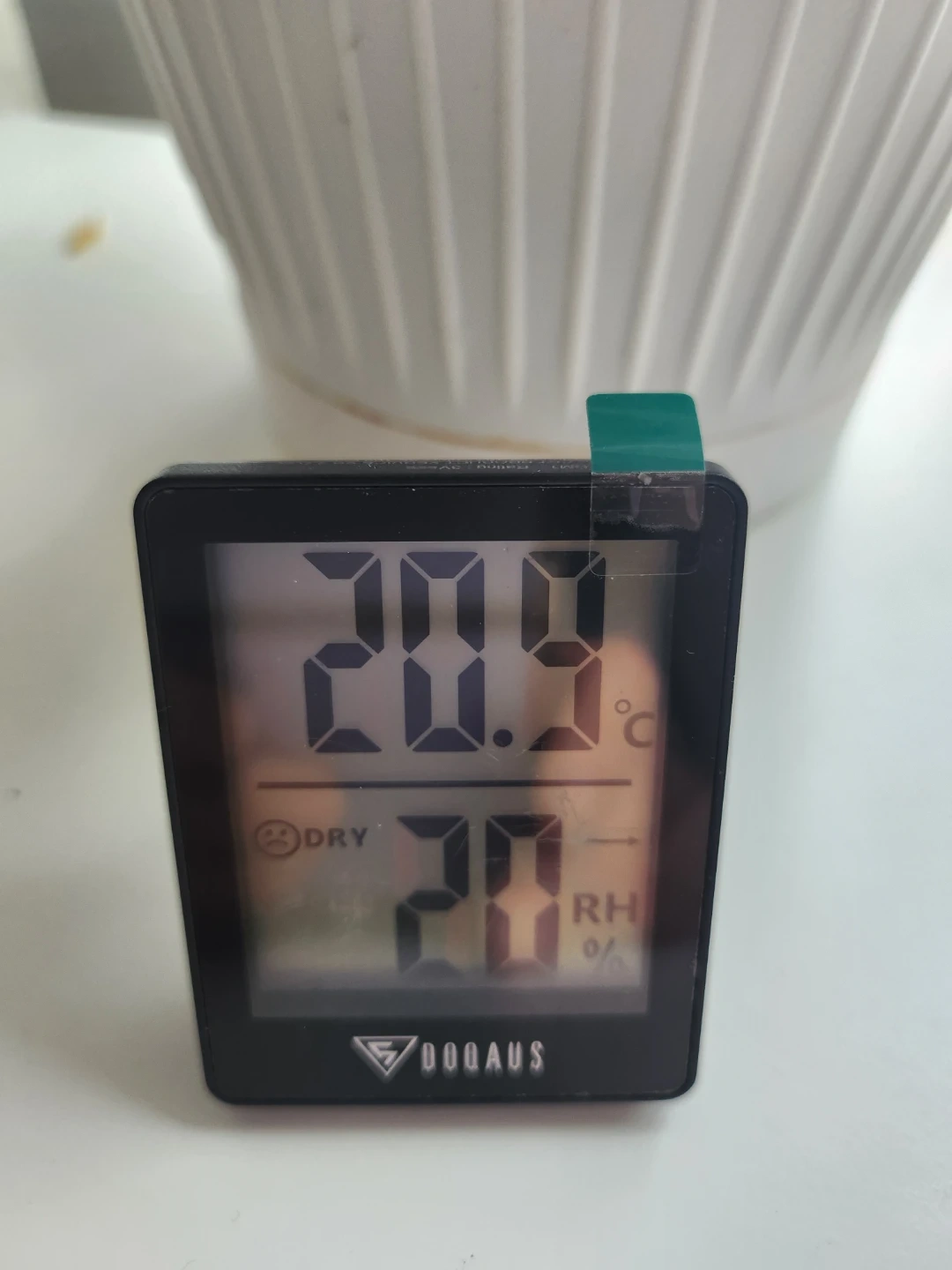This DOQAUS HM1 monitor tracks indoor humidity and temperature with fast response and a large measuring range. It's updated every 5 seconds. Displays current temperature in Celsius and RH percentage.