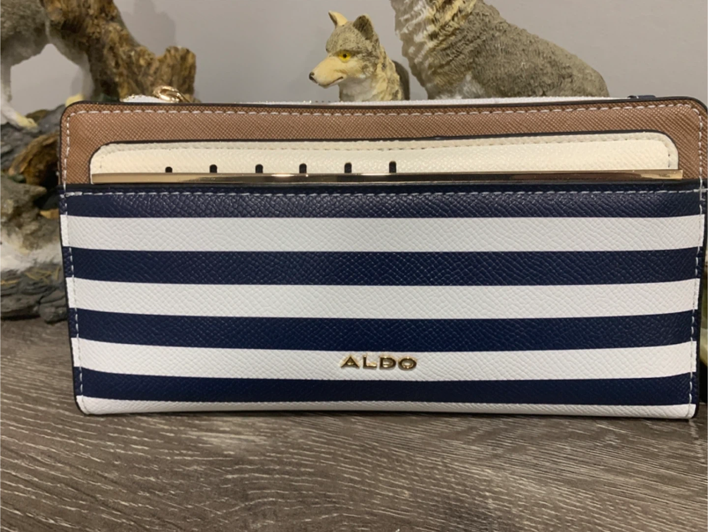 Cute striped wallet from Aldo! It's in great shape and has a secure clasp closure, perfect for keeping your cards and cash organized