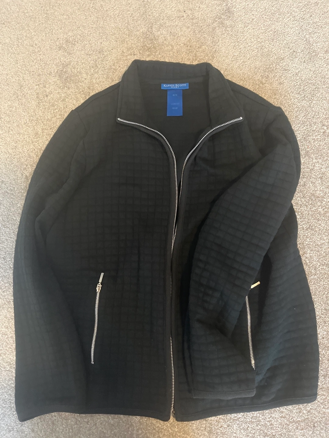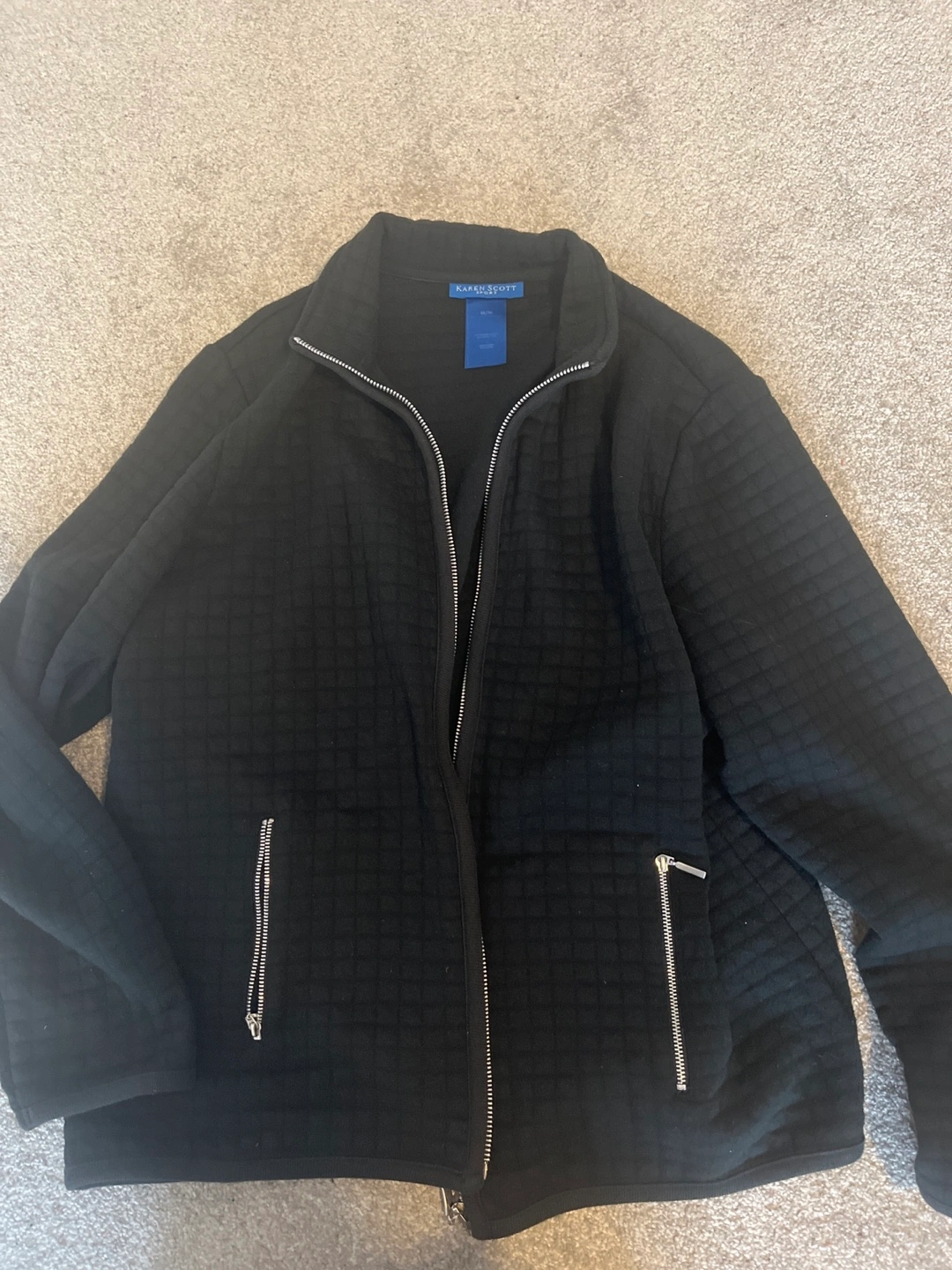 Black quilted jacket with zipper closure and side pockets. Size M/M.in a new condition pet and smoke free home