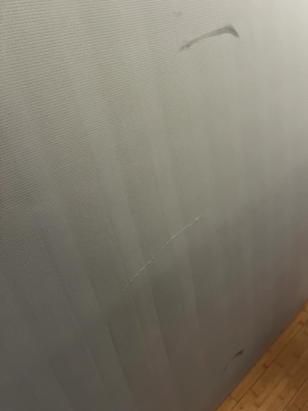This bed and mattress has been well maintained. The mattress remained covered by 4 layers during use. No stains, the only marks are on the bottom that happened during moving (see pics.) Mattress is Medium Firm.