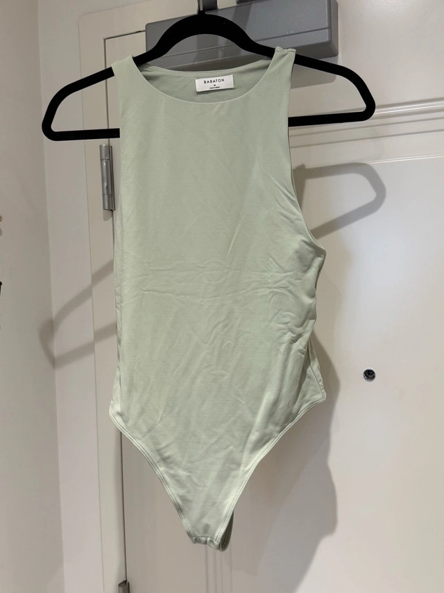 This Babaton bodysuit in size medium is perfect for layering or wearing on its own! It's in excellent condition, with no signs of wear. Worn once . The light green colour is super flattering, and it fits true to size. Features: - Brand: Babaton - Size: Medium - Colour: Light green - Material: Stretchy, comfortable fabric Pick up Quarry Park SE or Mahogany SE. If you're reading this, it's still available! Cash only