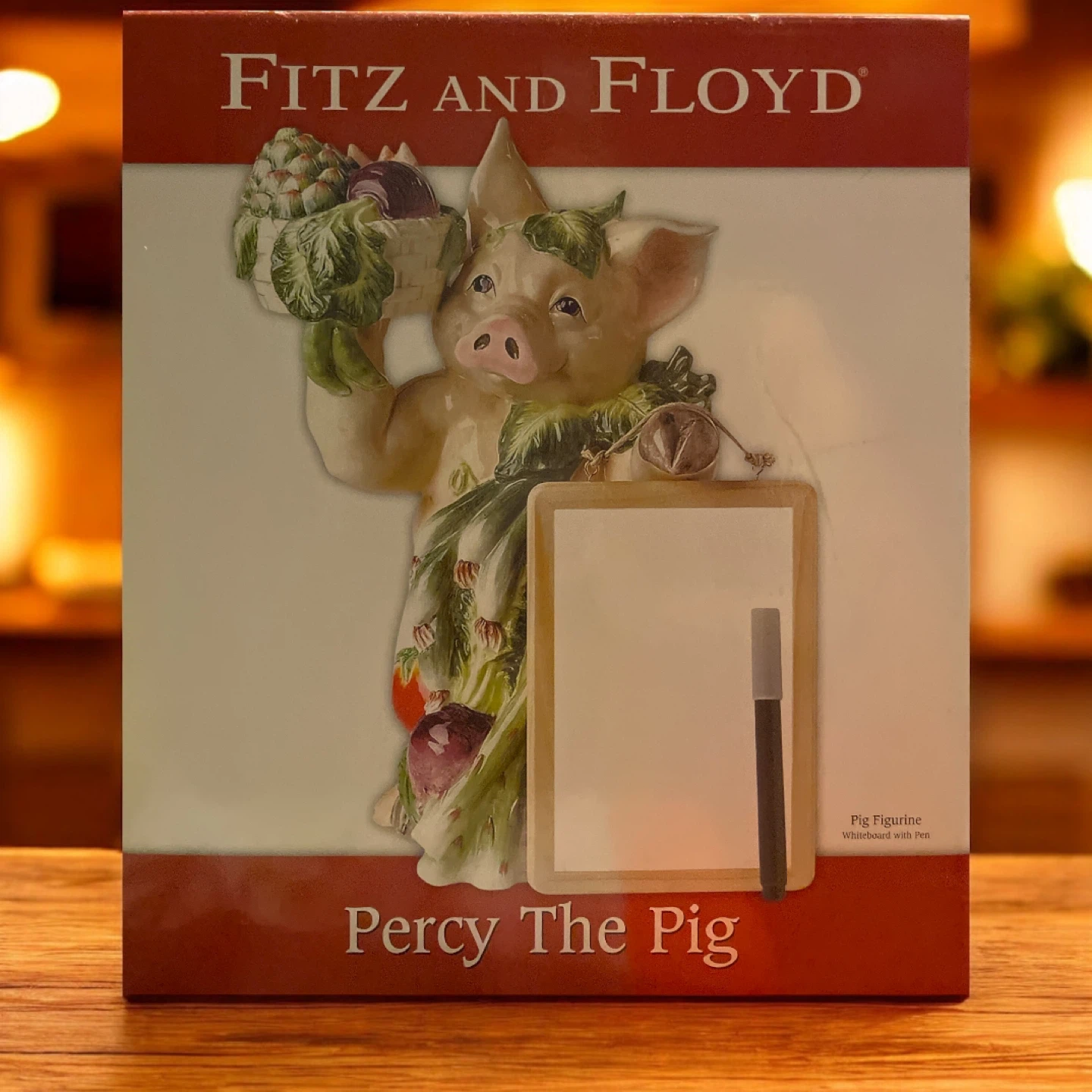 Price Range: Used condition items generally range from approximately $30 USD to over $149 USD, depending on condition and specific retailer. Fitz and Floyd Percy The Pig figurine. This charming piece features a pig figurine holding a whiteboard with a pen. It's a delightful addition to any home decor!