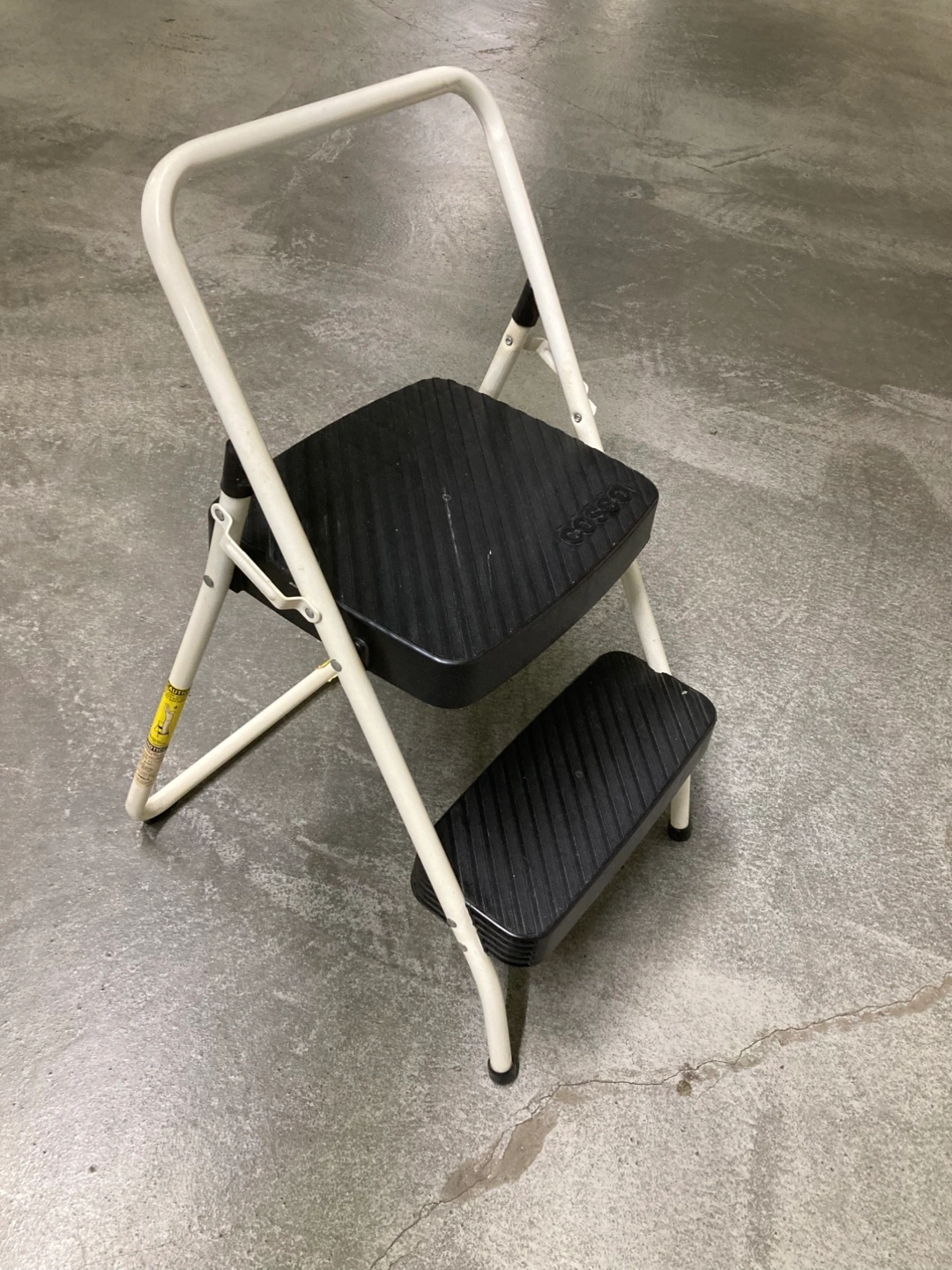 Selling a Cosco 2-step folding step stool. It's in great shape and ready to help you reach those high shelves! It features a black and white design and folds up for easy storage when not in use