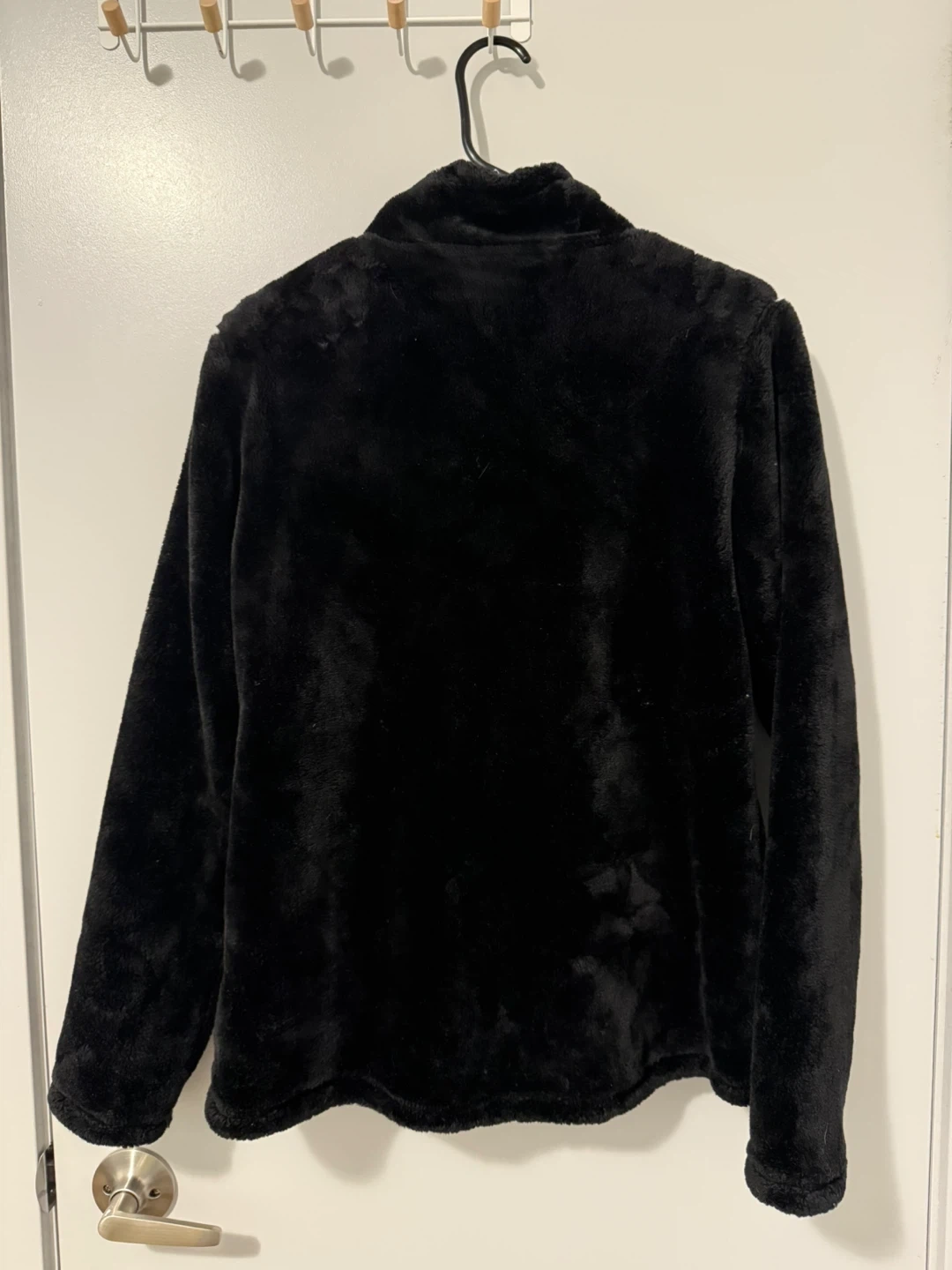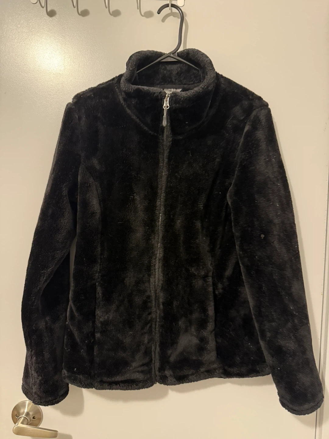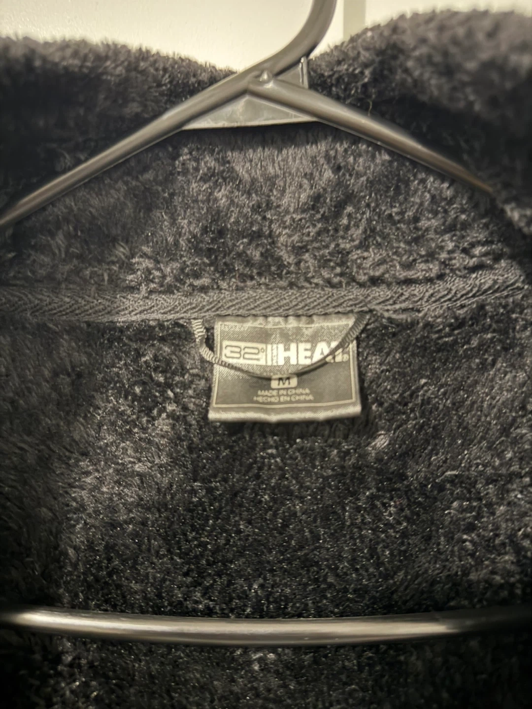 Cozy up with this 32 Degrees Heat black fleece jacket! It's a size medium and features a full zipper. Perfect for layering on chilly days! Wore at home few times only!