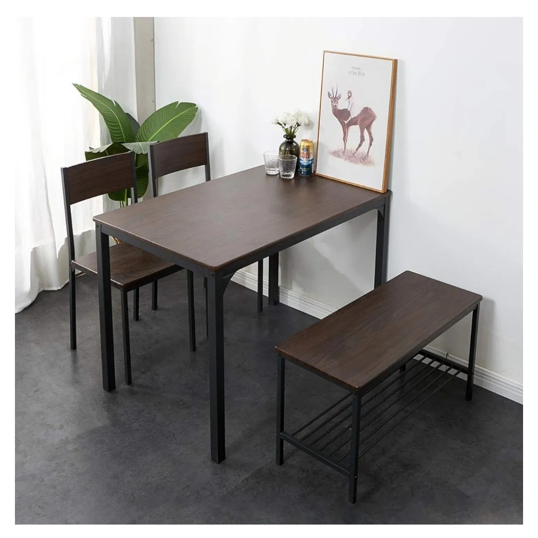 Dining Table Set with Bench and Two Chairs
