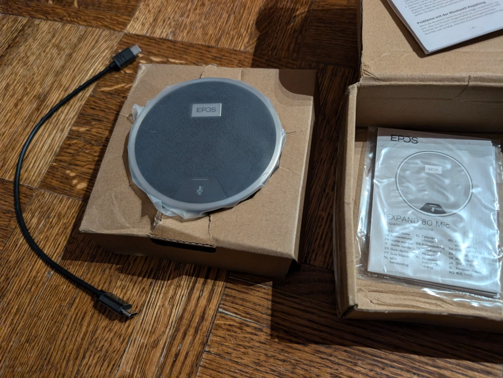 EPOS EXPAND 80 Microphone - USB-C and 3.5mm Connections. Includes original packaging and all cables. The microphone is in excellent condition. A versatile microphone that can be used for conferencing, gaming, and more.