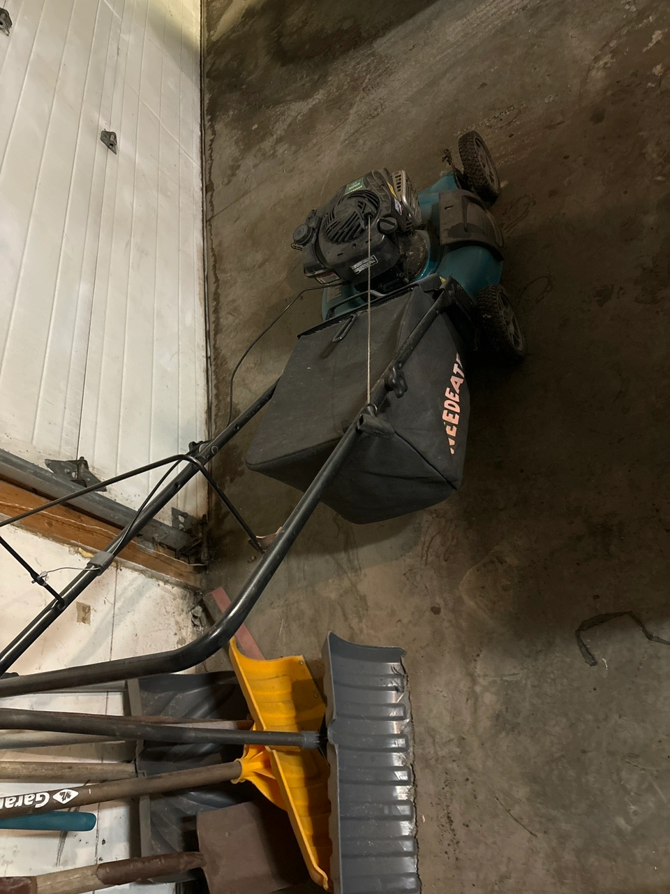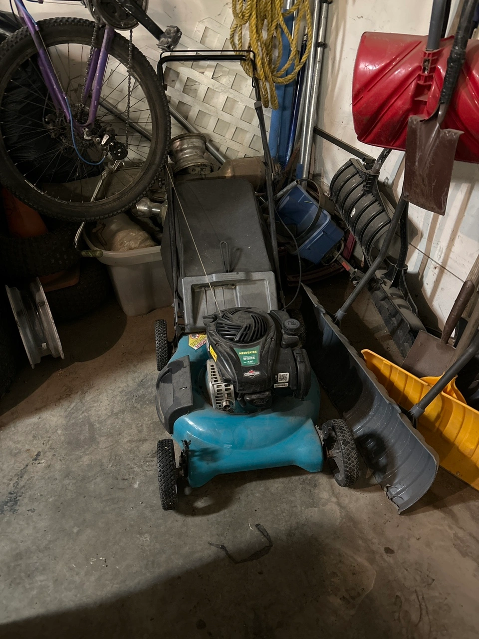 Gas-powered lawnmower in good condition. Has a Briggs & Stratton 550E Series engine.