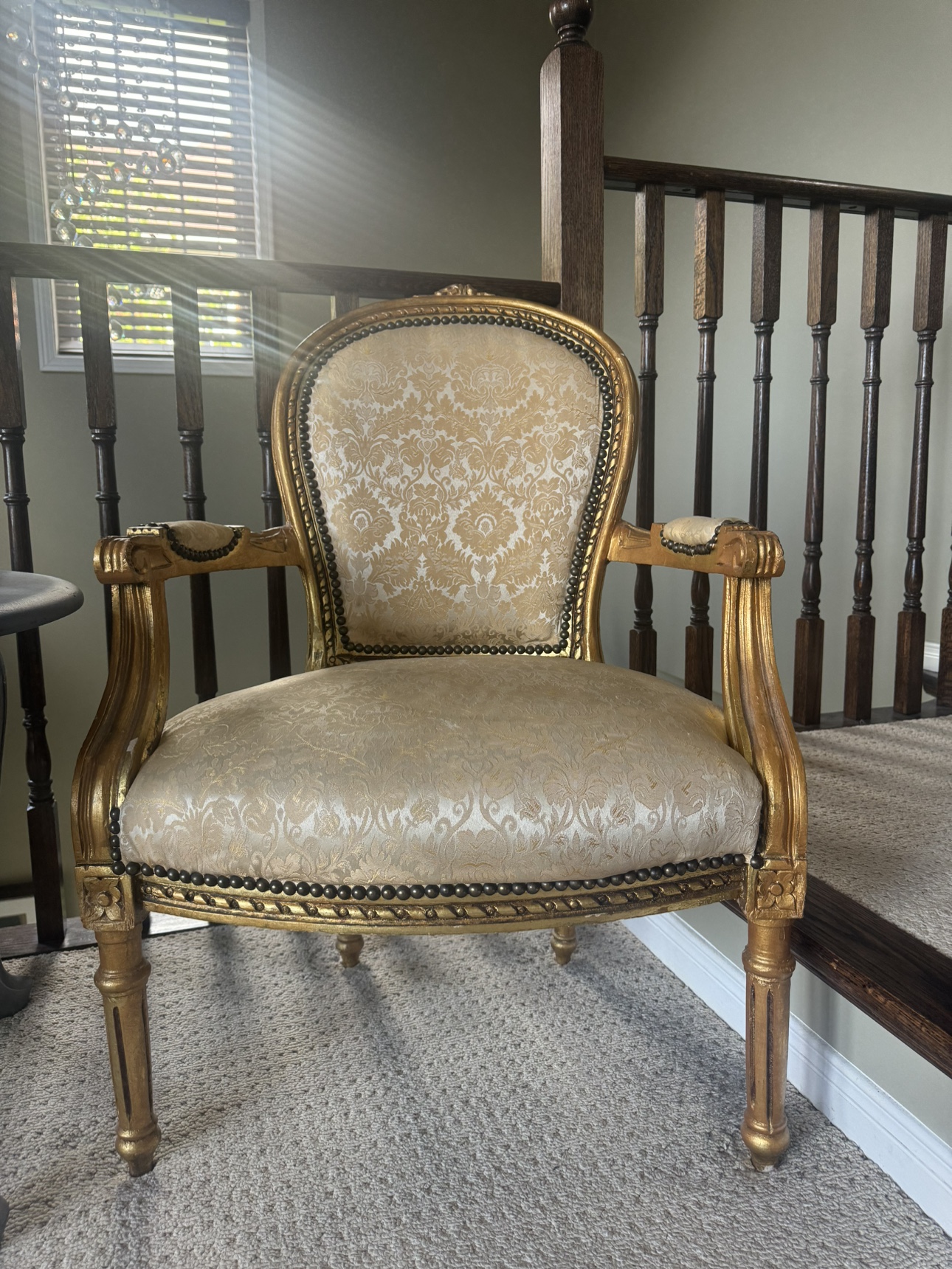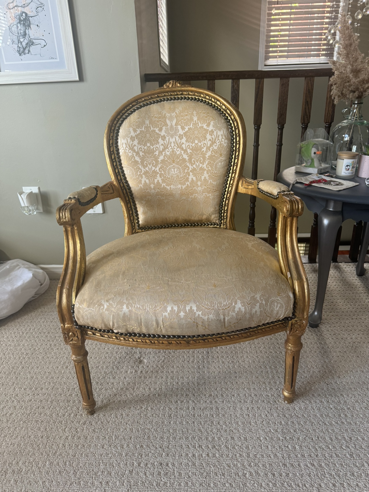 1 / 31 / 3Buy & SellGold Accent ChairGold Accent Chair$130A beautiful and elegant chair with a gold frame and a gold and beige patterned upholstery. Open to offers.ConditionGoodWHERE TO MEETL1KView MapSELLERMinTaunton140 reviews0 chats·0 favorites·32 viewsSEND CHAT TO SELLERHi Min! I’m interested in your listing.Hi Min! I’m interested in your listing.Get the Karrot app to chatSign In to chat