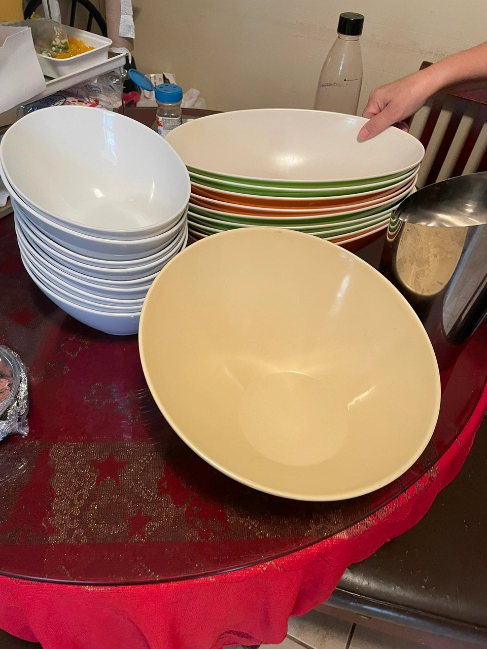 240Includes everything in pictures. Shatterproof, 100% BPA Free, Dishwasher Safe, Commercial-Grade The beautiful and unique curvilinear design perfectly decorates your table and serves your guests in a practical way. Exquisite tableware is enough to make food more delicious, and it adds extra points to decoration These salad bowls are stackable and won't take up much space $225’for whole set and extra kitchen supplies