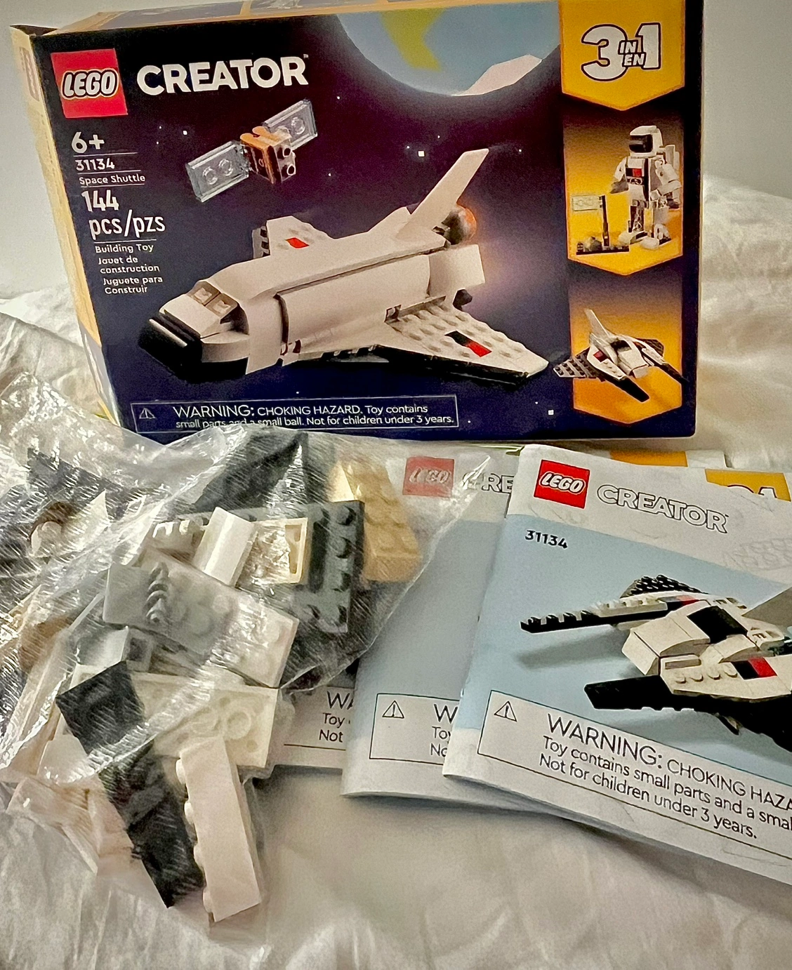 267This set includes 144 pieces and allows for building a space shuttle, a satellite, or an astronaut. It is recommended for ages 6+. Includes instructions and original box.