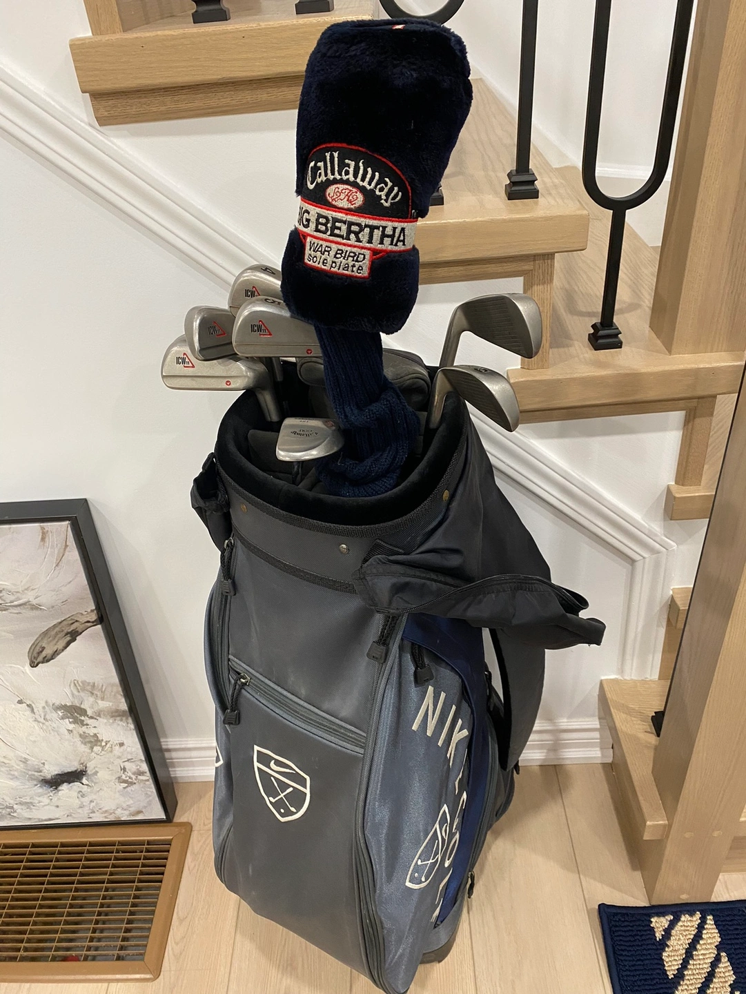 77Used golf set in good condition. Includes: 10x Taylor Made ICW 11 2x Callaway 1x Nike golf bag 1x Nike commuter bag 2x 3 titleist balls 3 bags of picks Condition: Good