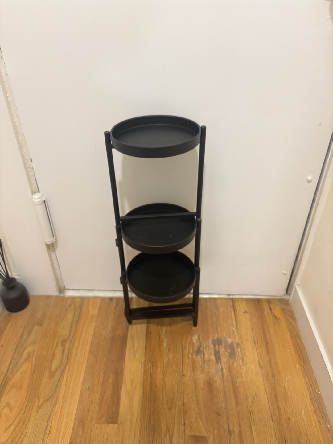 Triple Stand folds and is 26” tall and each tray is 8” wide.