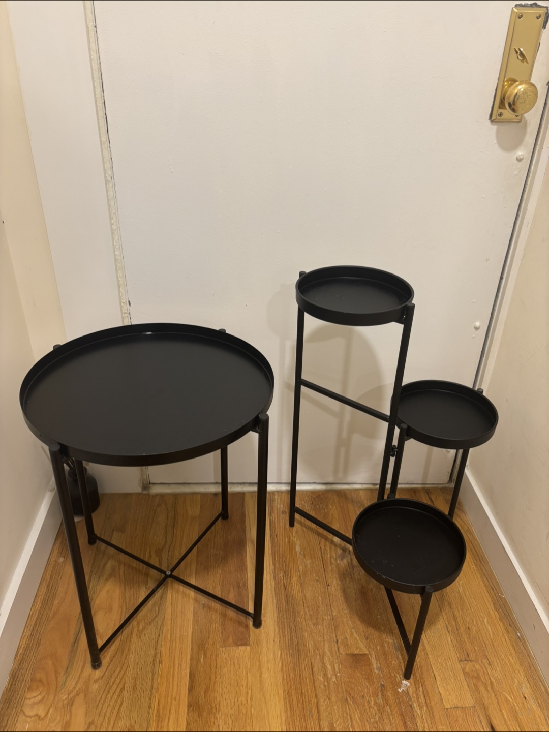 Selling 2 black metal side tables in good condition