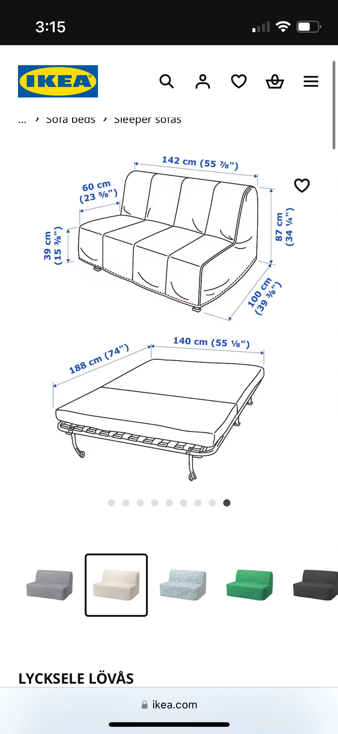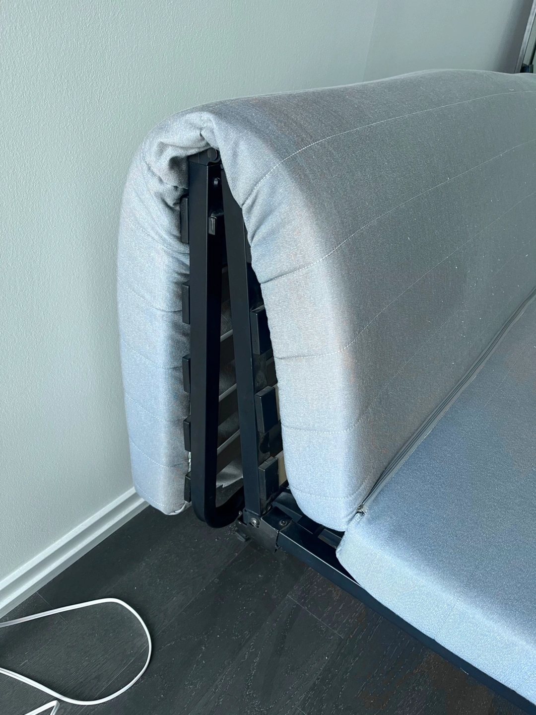 267Grey IKEA LYCKSELE LÖVAS sofa bed. Converts into a double bed with a pull-out mattress. The cover is missing. You can buy it from IKEA. It’s pickup only and you may need more than one person for it. Check the link for details : https://www.ikea.com/ca/en/p/lycksele-loevas-sofabed-knisa-light-gray-s69387037/#content
