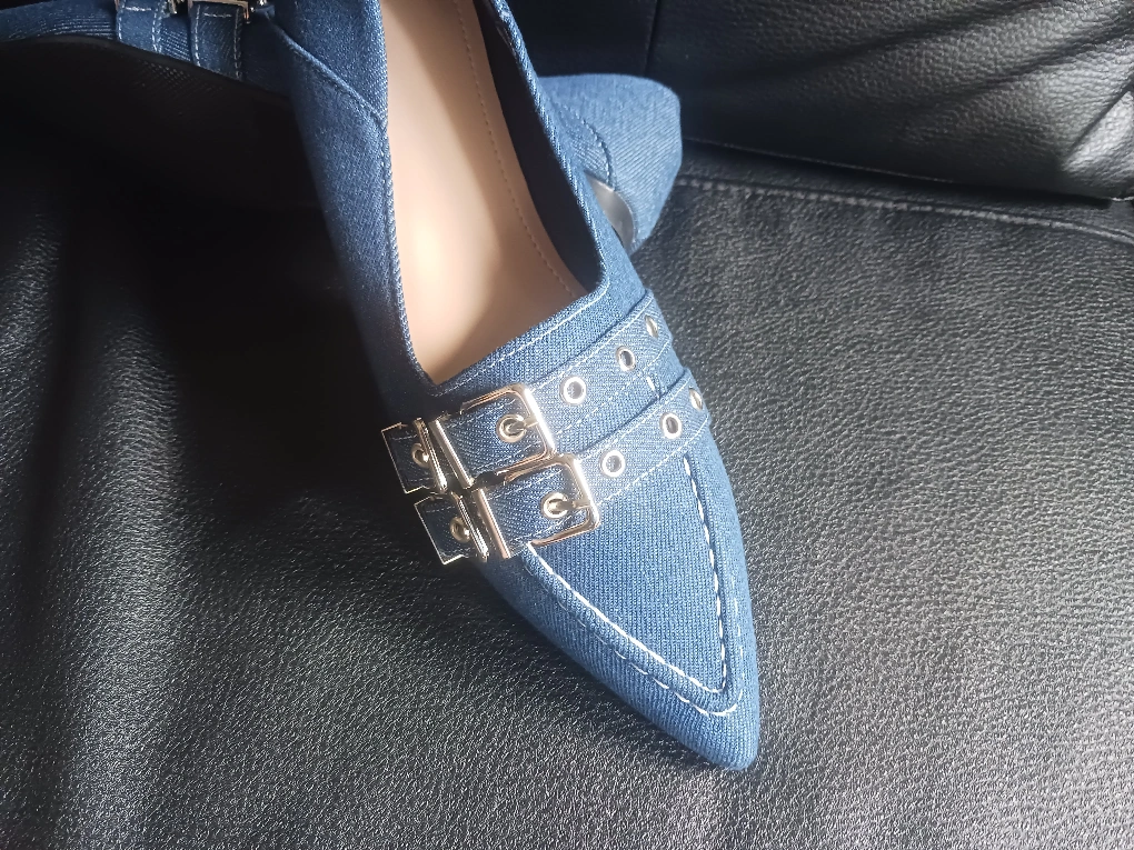 Blue Denim Buckle Loafers