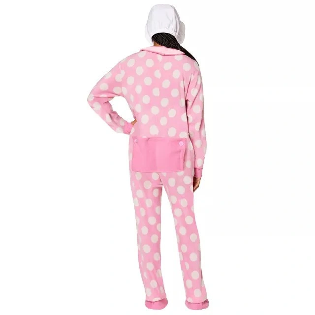 This is a pair of adult's baby costume sets with a pink and white (women's) and blue and white (men's) onesie jumpsuit for Halloween.