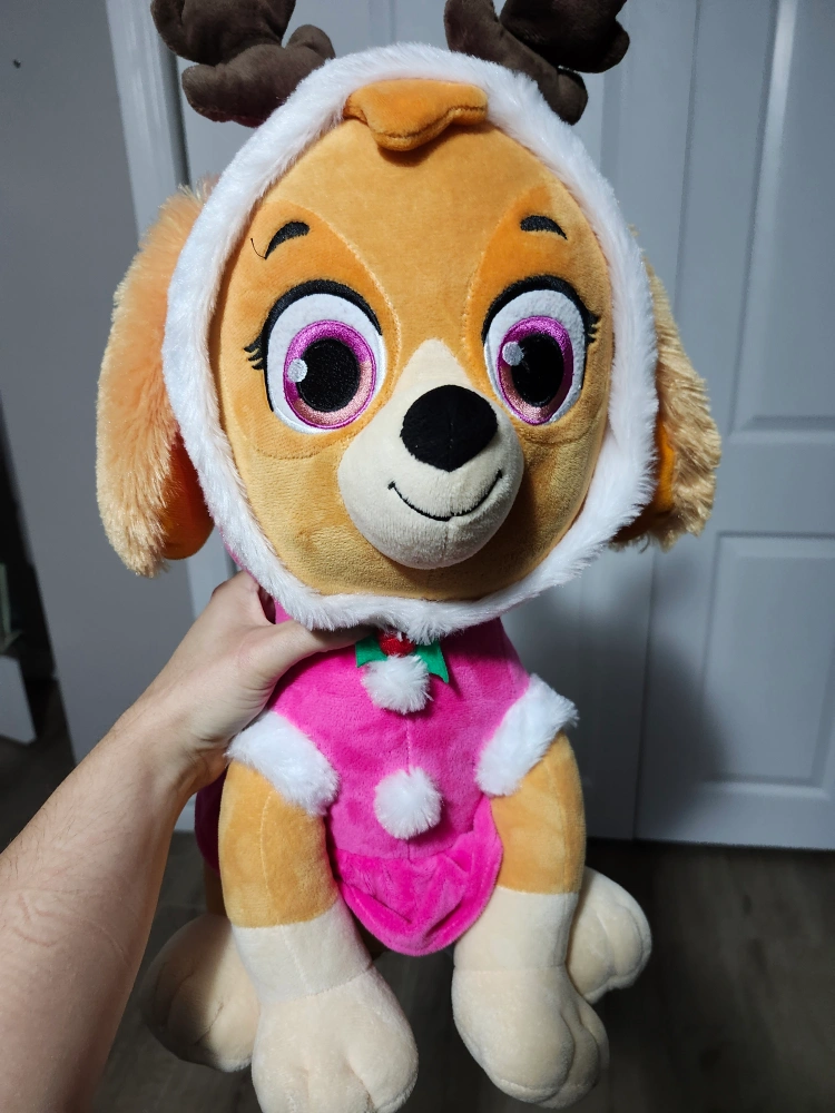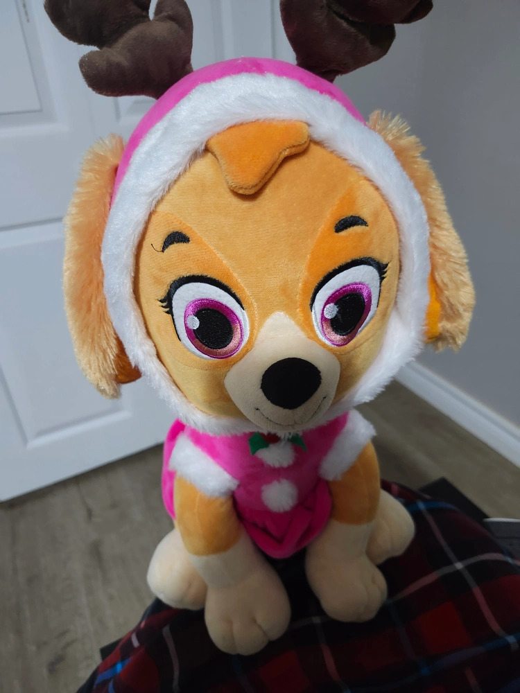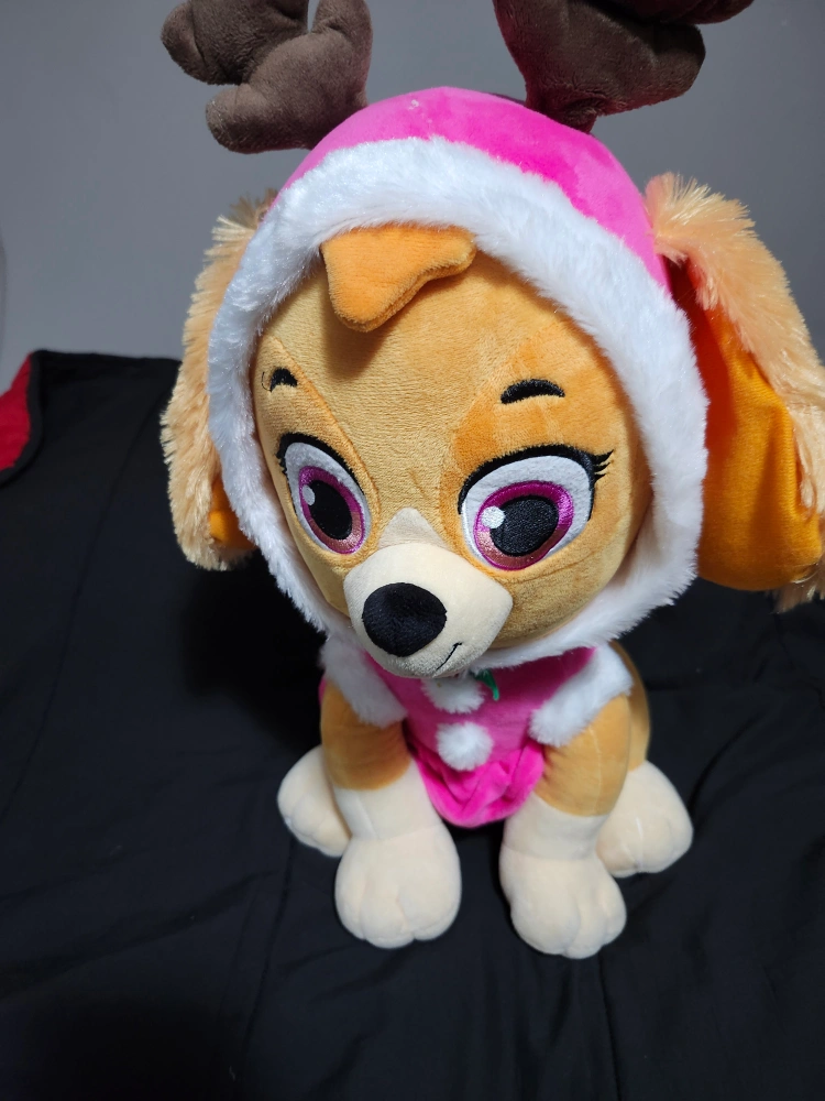 Plush toy of Skye from Paw Patrol in a Christmas outfit. (2023)