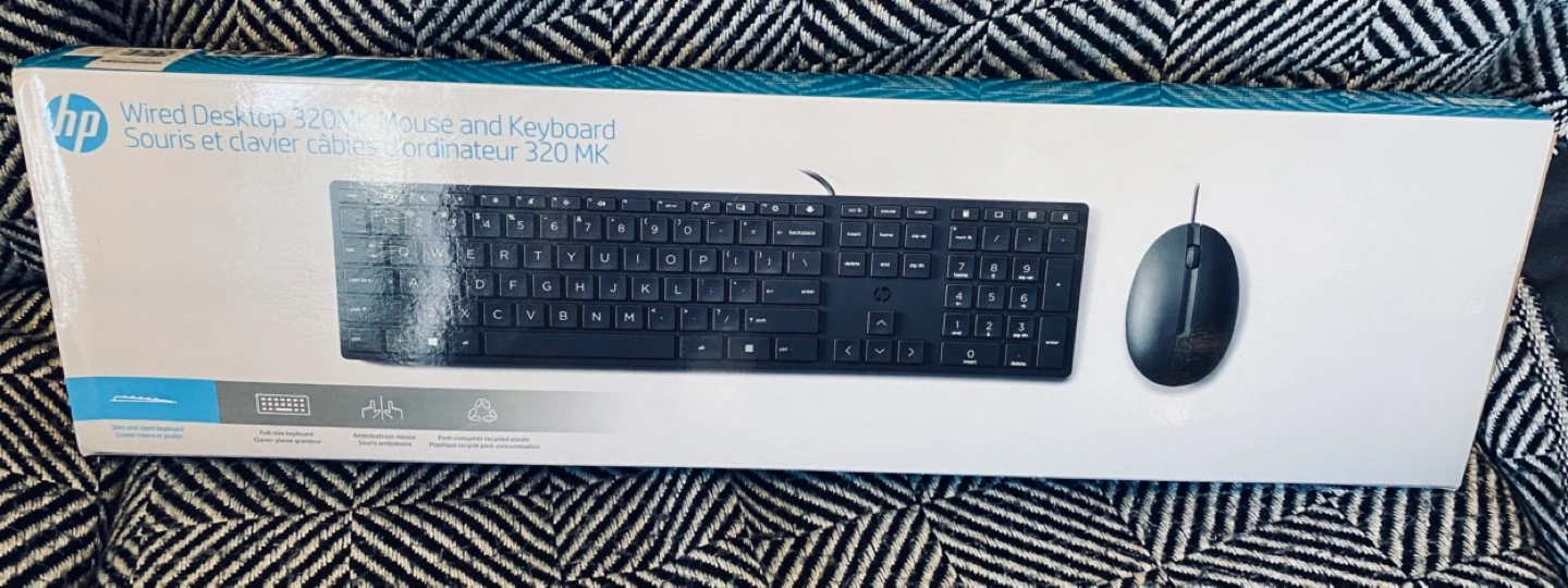 New, sealed, in box. Black wired keyboard and mouse. Includes USB receiver. Great for home or office use. Open to offers!!