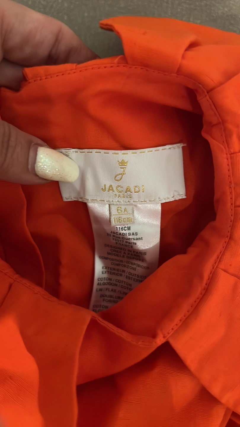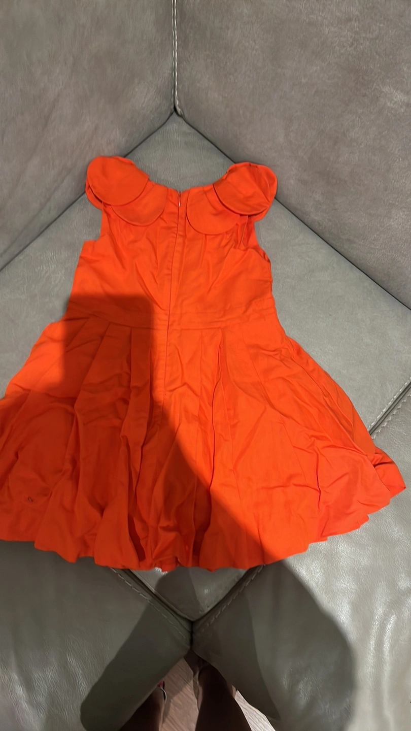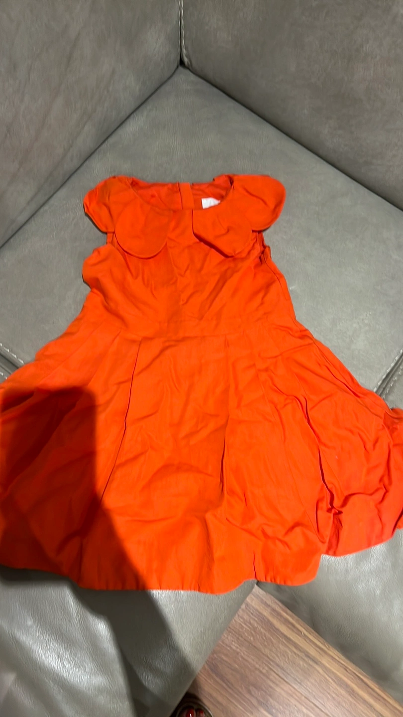 96Size 6 T, Orange cotton dress, sleeveless, with peter pan collar.