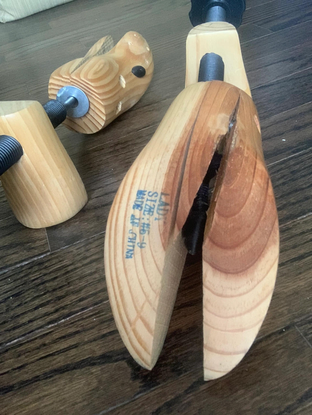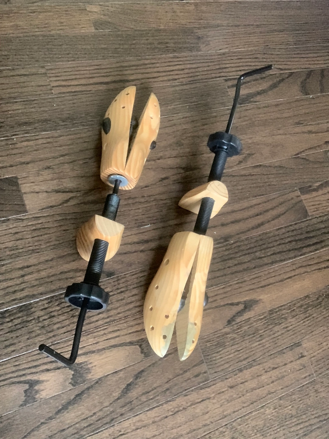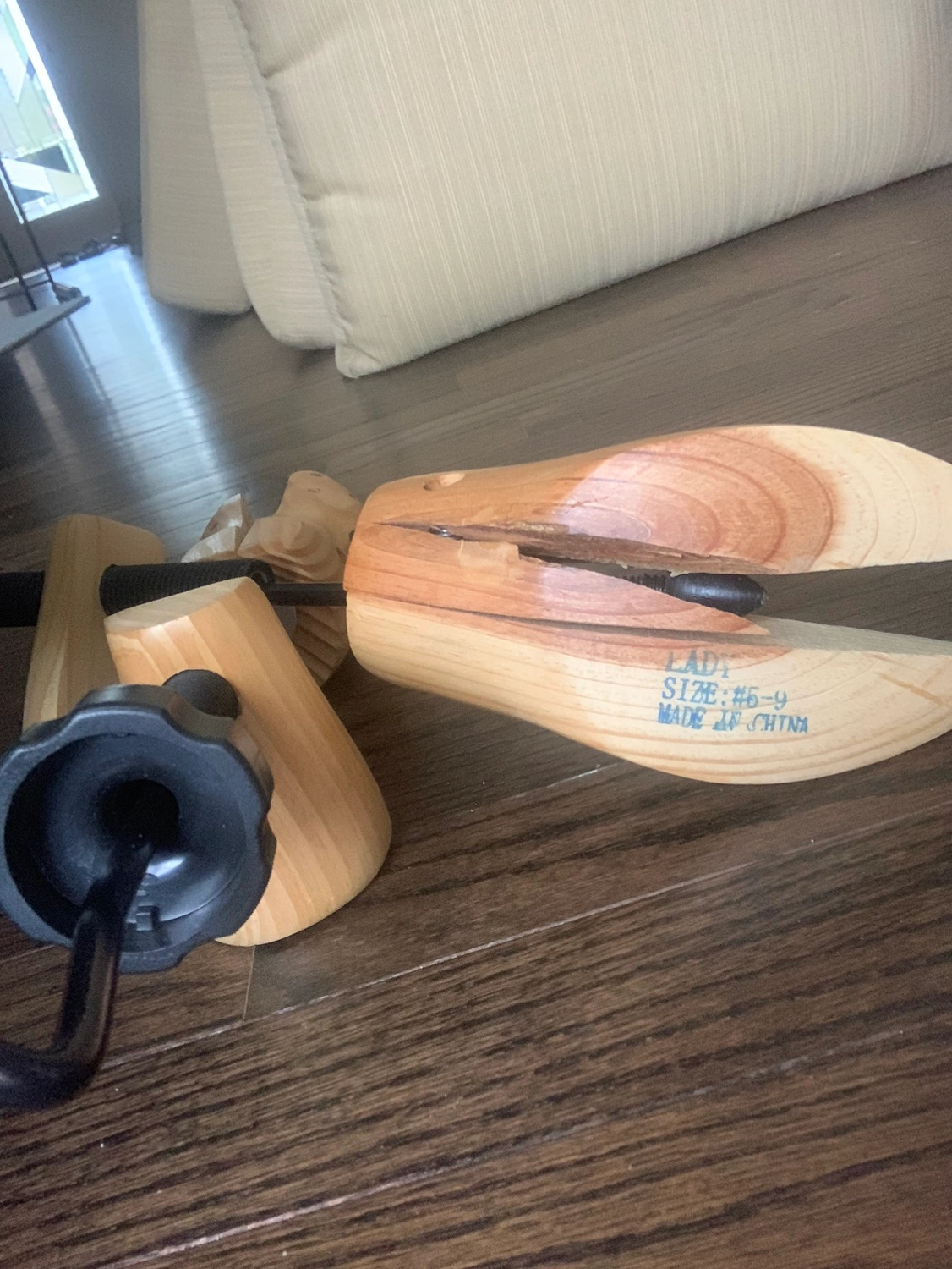 109Pair of shoe stretchers, size 6-9. Made in China. Includes a metal rod and twist handle.