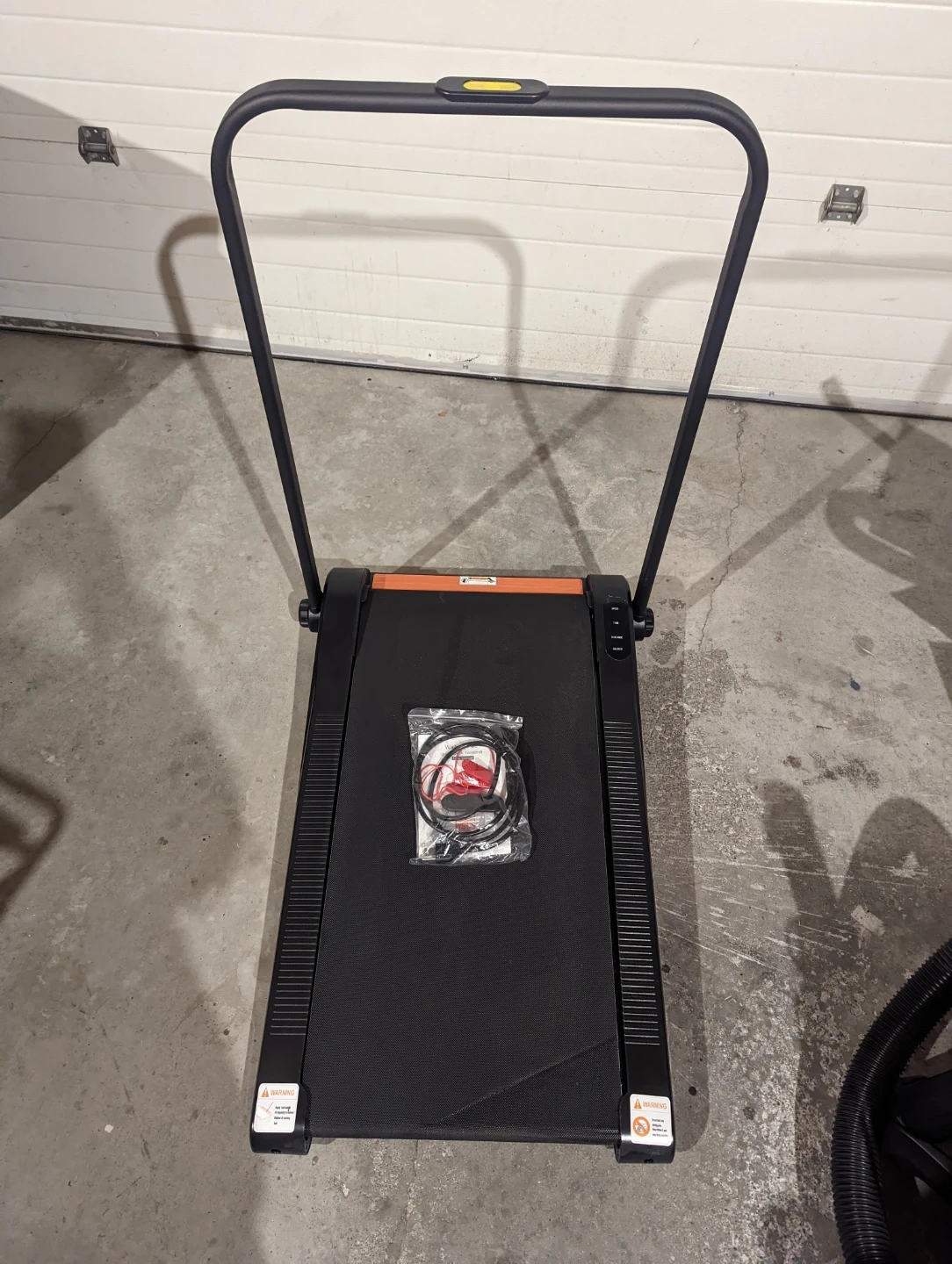 This is a compact folding treadmill. It comes with all necessary cables and accessories for setup. Perfect for home workouts when space is limited! Hardly used, in great shape.