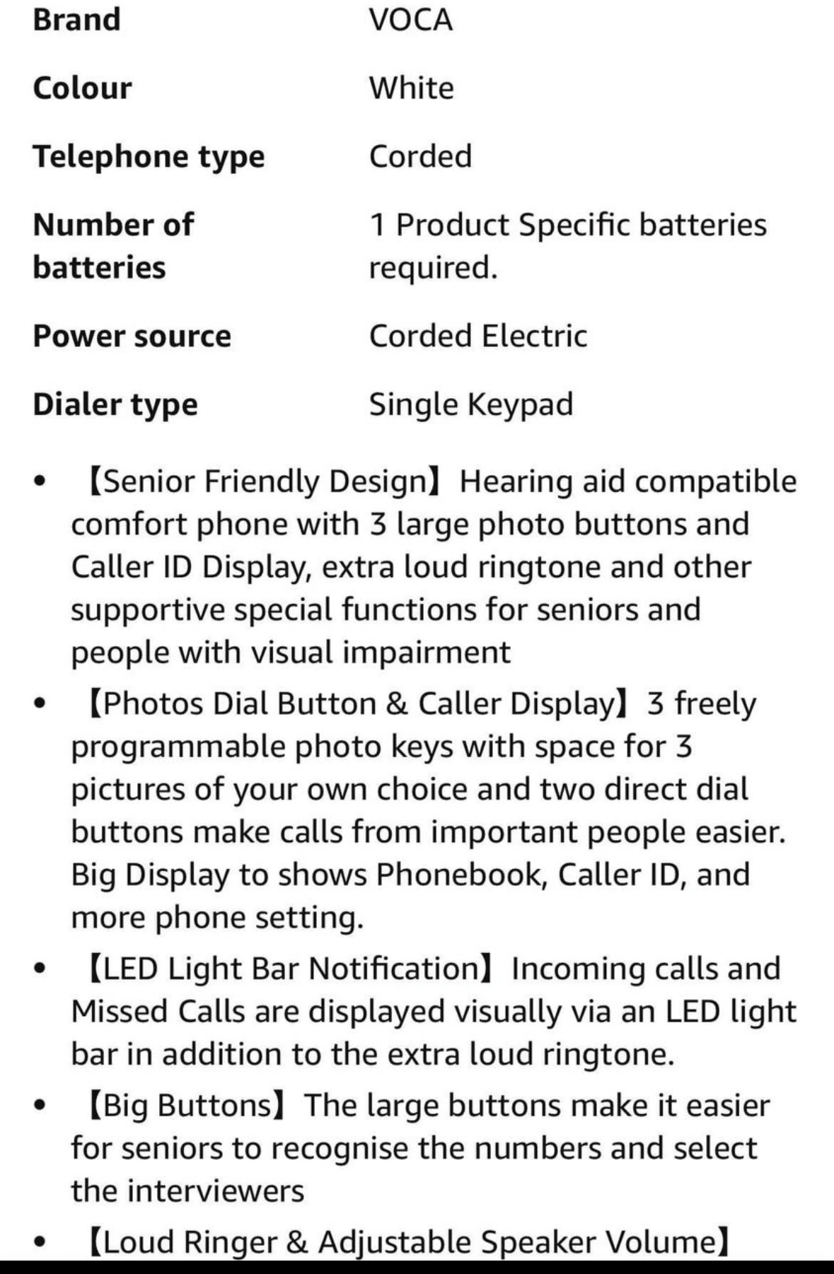 BNIB This corded phone is perfect for seniors and people with visual impairments. It features a large display, extra loud ringtone, and three photo speed dial buttons. Beat gift you can give any elderly friend or family member! Great for dementia alzheimer’s, glaucoma , hearing and vision lost allow your loved ones to stay connected with this phone that caters to their issues! Easy to use Great gift for Christmas or any day! Paid $ over $220 Never been used! easy set up!