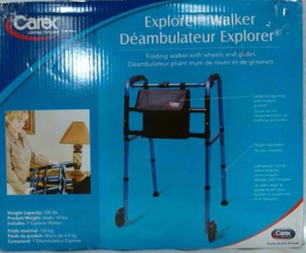 Carex Explorer Folding Walker with 5" Wheels, Blue
