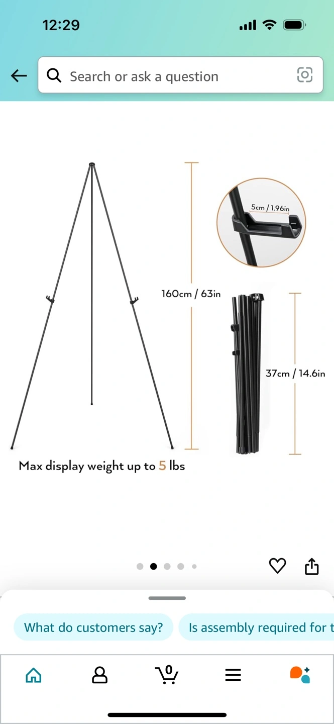 3.Adjustable- Two display holder arms can be locked into any desired position across the height of the 63" easel and the holder arms allow you to securely display items up to 5 pounds in weight.For more stable,set the easel in a triangle, try to stand on the ground at the greatest angle (to increase the distance between each leg)
