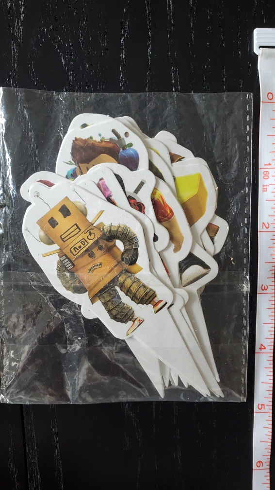 A set of Roblox themed party decorations including a banner and cake toppers.