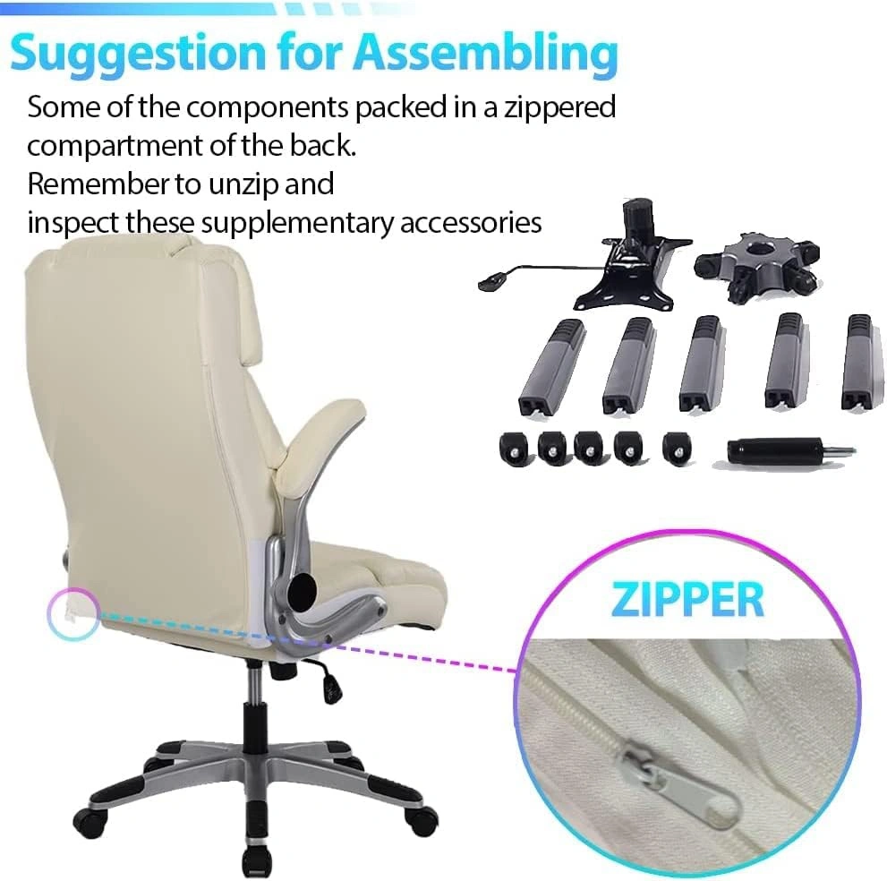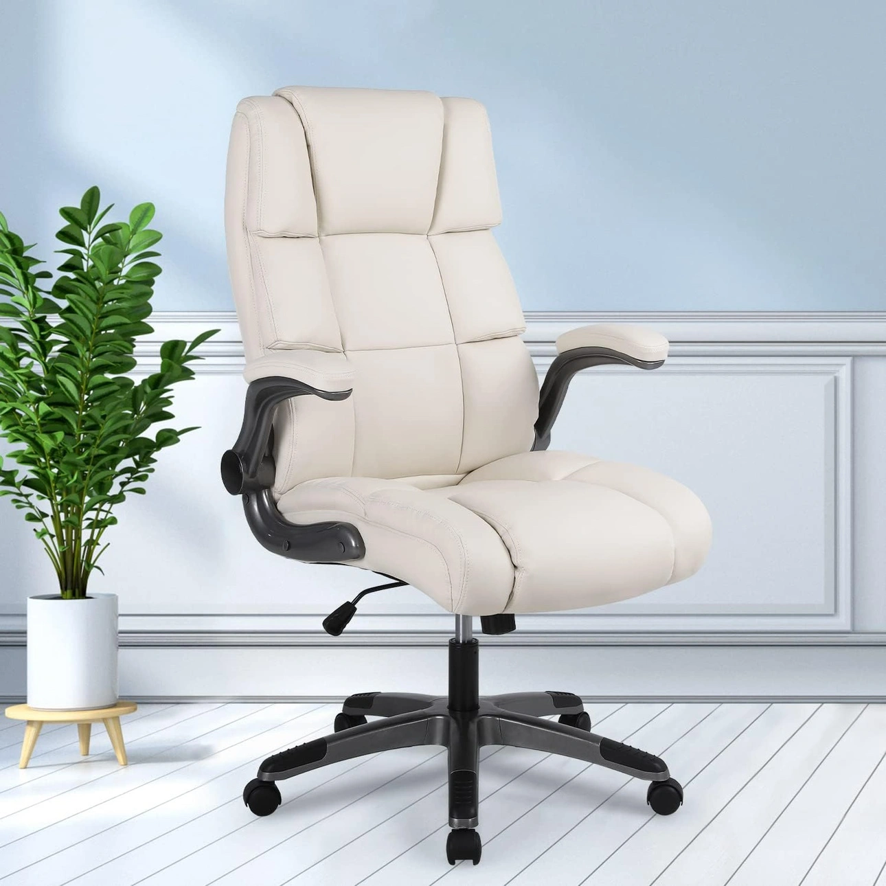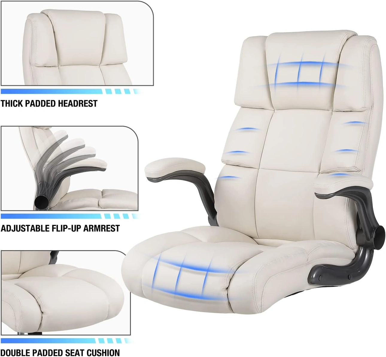 Executive Office Chair, PU Leather Office Chairs with Flip-up Arms, 360° Swivel Rocking Chair with Thick Cushion, Home Office Desk Chair Managerial Chairs