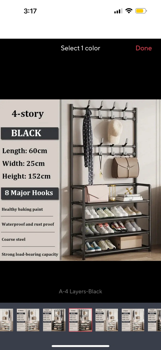 4-Tier Shoe Rack with Coat Hooks, NEW