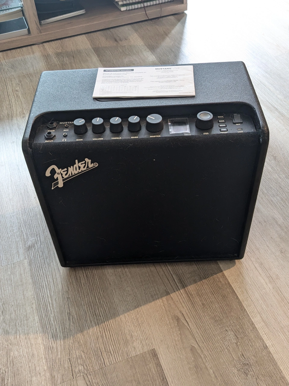 This is a Fender Mustang LT25 guitar amplifier. It is in good condition as it is about a year old but has never been used. The amplifier is perfect for practicing or playing live.