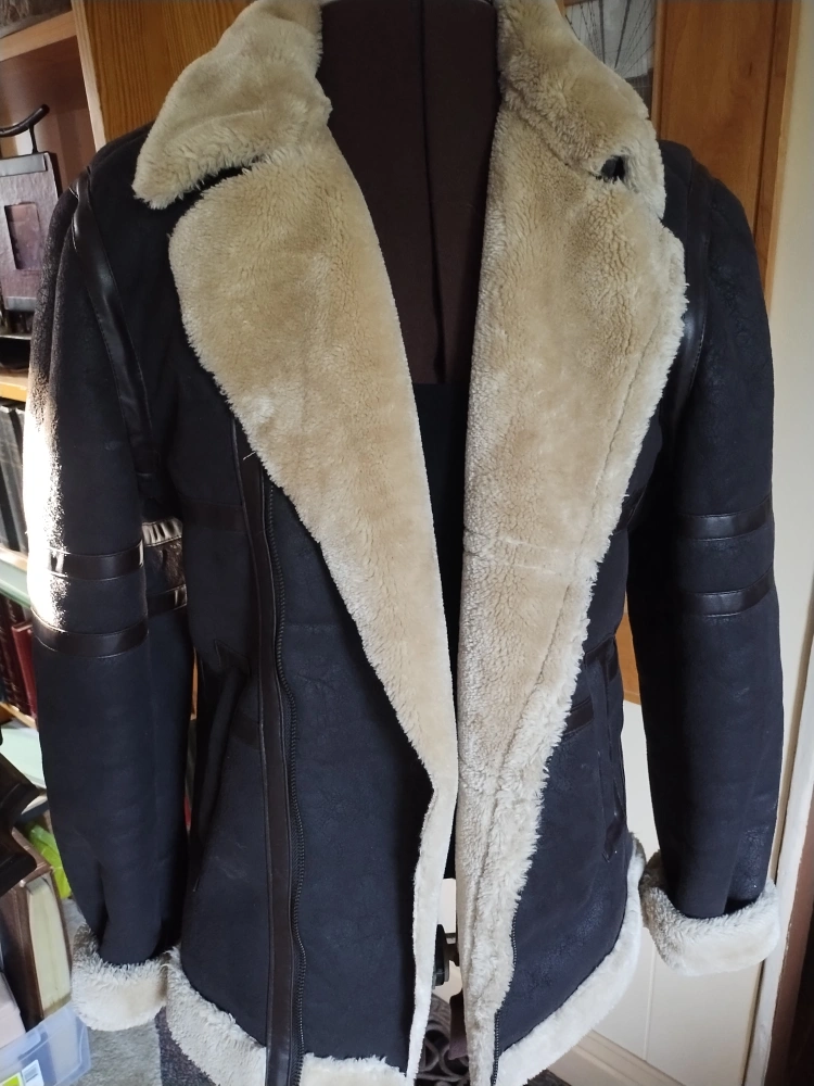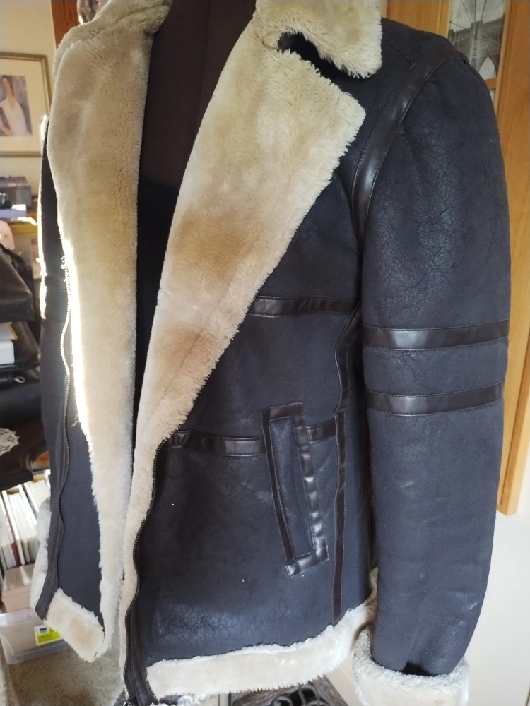 Looks so real but is faux shearling, and leather look. Quite warm, cosy and attractive. Clean, scent free and VVG condition.