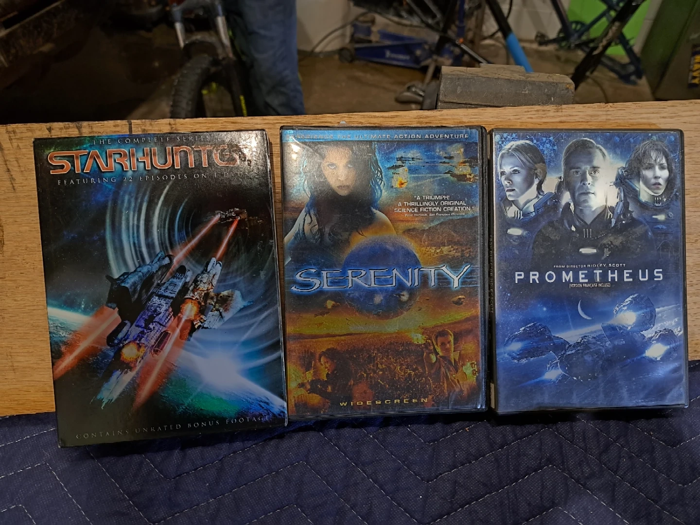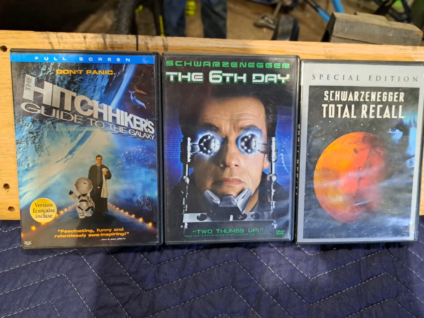 This is a collection of 10 DVDs including A Witch's Tail, Lord of the Flies, MirrorMask, Starhunter Complete Series, Serenity, Prometheus, The Ninth Gate, The Manhattan Project, Hitchhiker's Guide to the Galaxy, The 6th Day, Total Recall, Vantage Point, Deliverance, and Deadly Breed. They are all in DVD format.