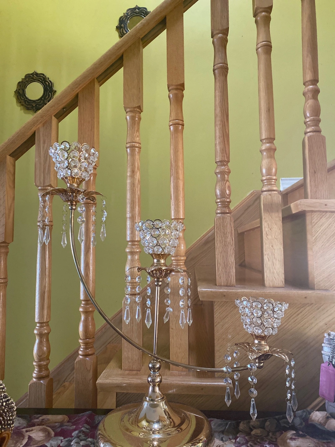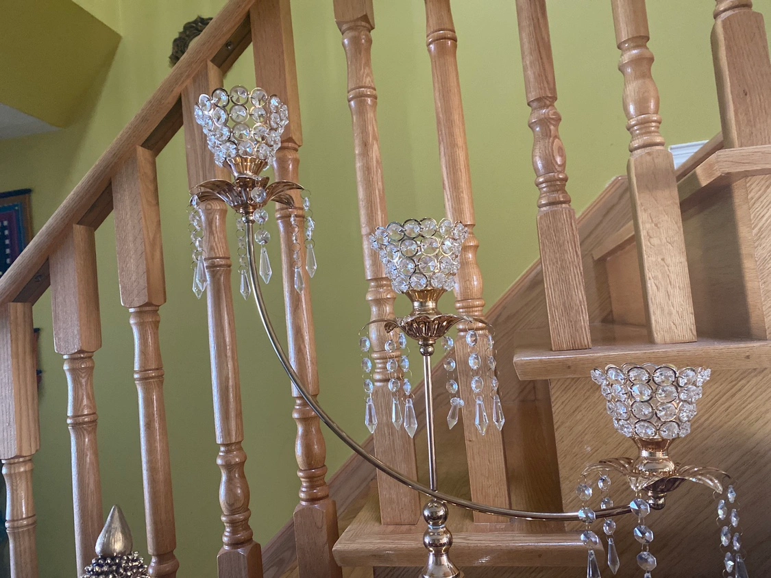 1000+This is a gold candle holder with crystal accents and 4 candle holders.