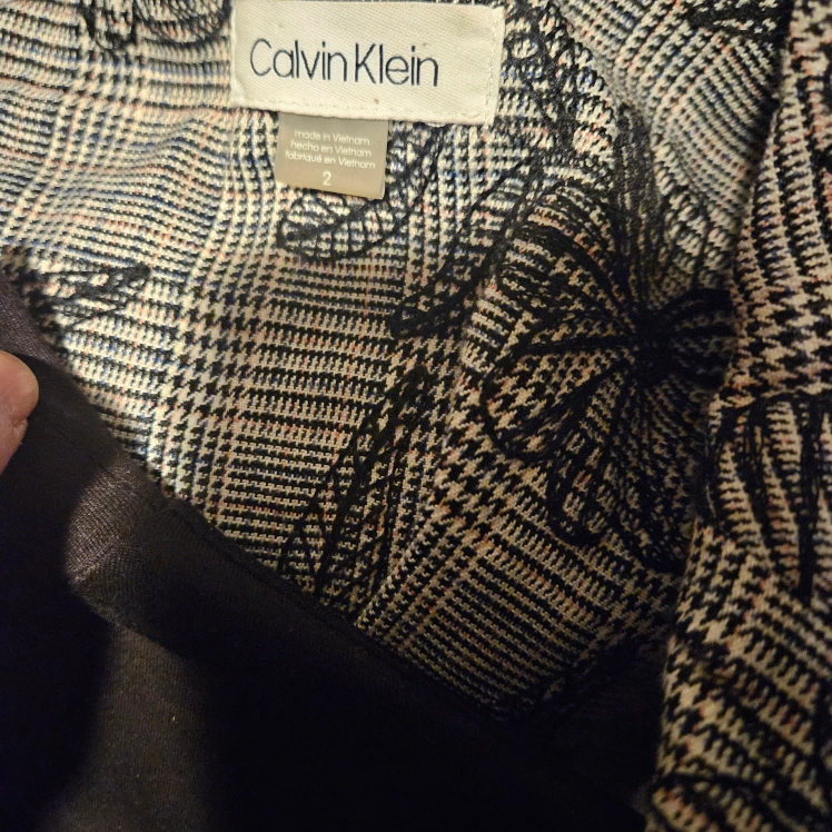 Calvin Klein Grey Casual Plaid Floral Embroidery Coat Dress Sz2