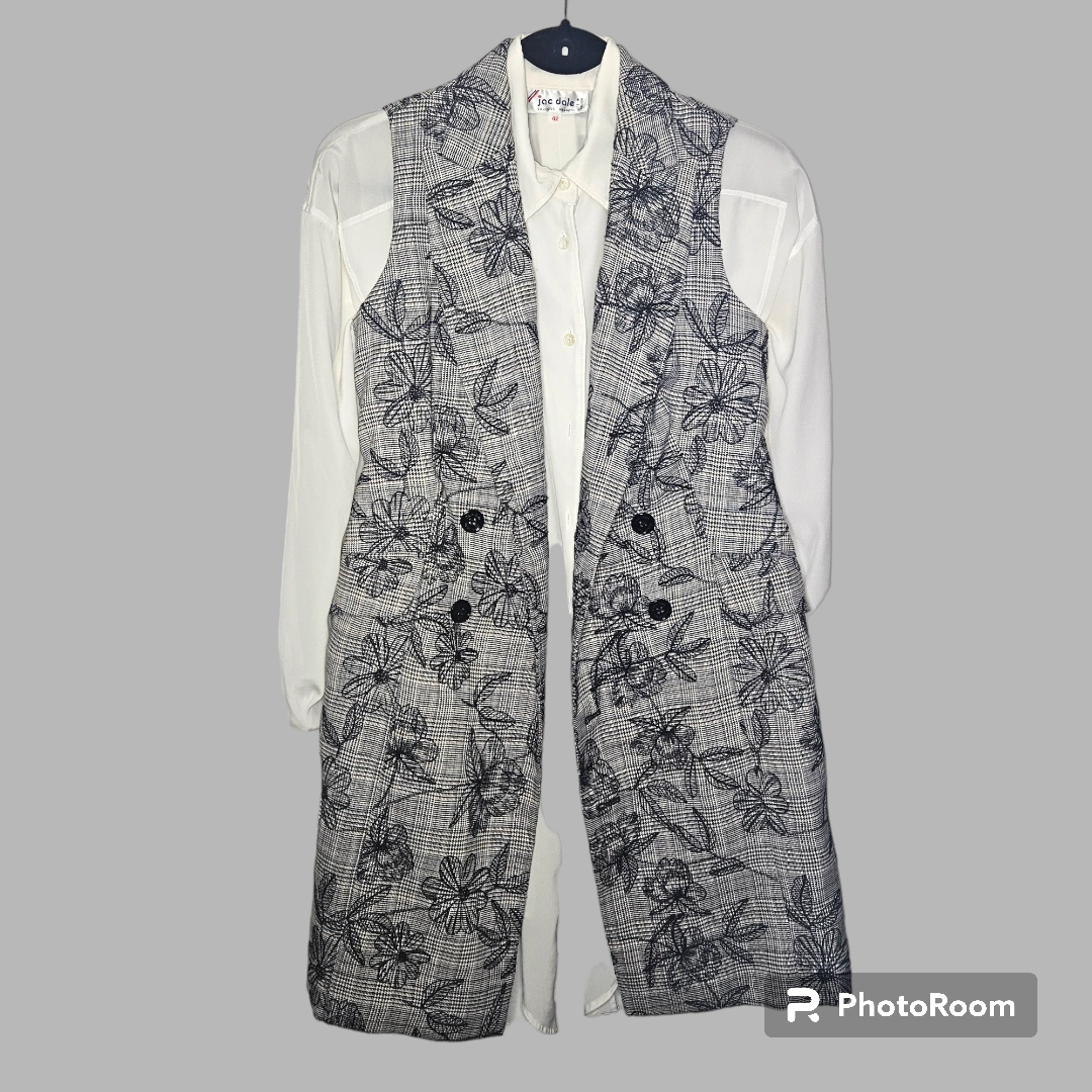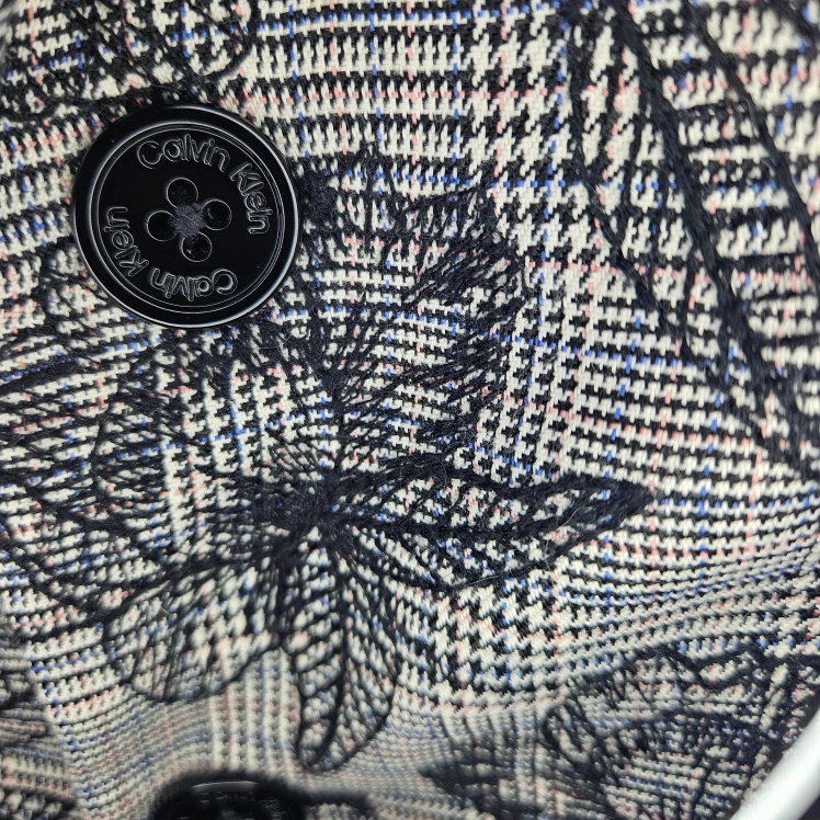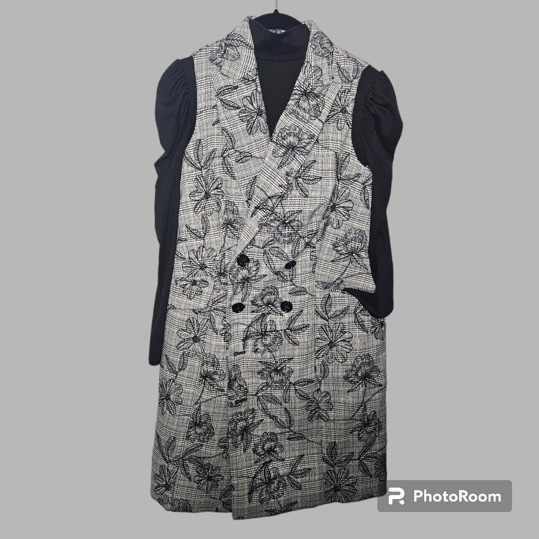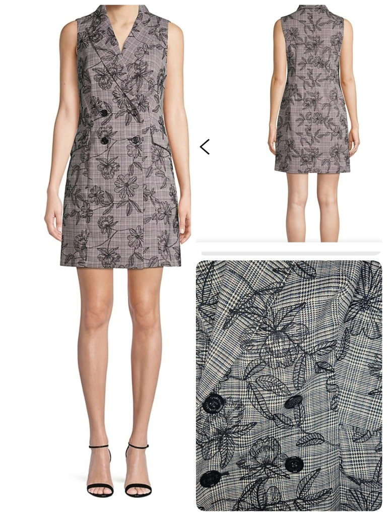 Calvin Klein Casual floral embroidery over subtle blue/pink & black plaid coat vest dress