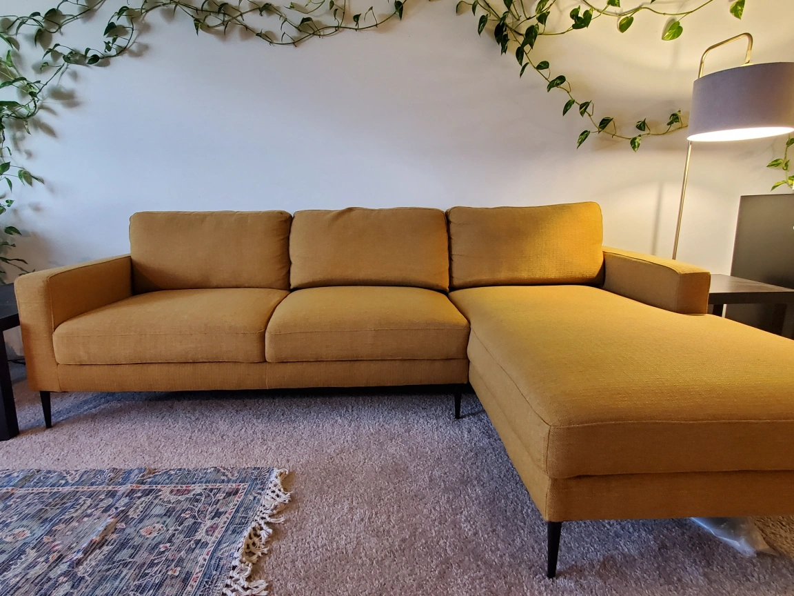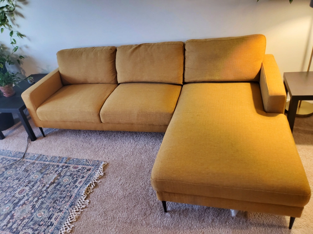 Buy & SellStructube Teresa Sectional SofaStructube Teresa Sectional Sofa$850Mustard yellow sectional sofa. Fabric is in great condition. Legs are black. Only used for a year. ConditionLike newWHERE TO MEETCapulet laneView MapSELLERAndresW London100 reviews0 chats·0 favorites·85 viewsSEND CHAT TO SELLERHi Andres! I’m interested in your listing.Hi Andres! I’m interested in your listing.Get the Karrot app to chatSign In to chat