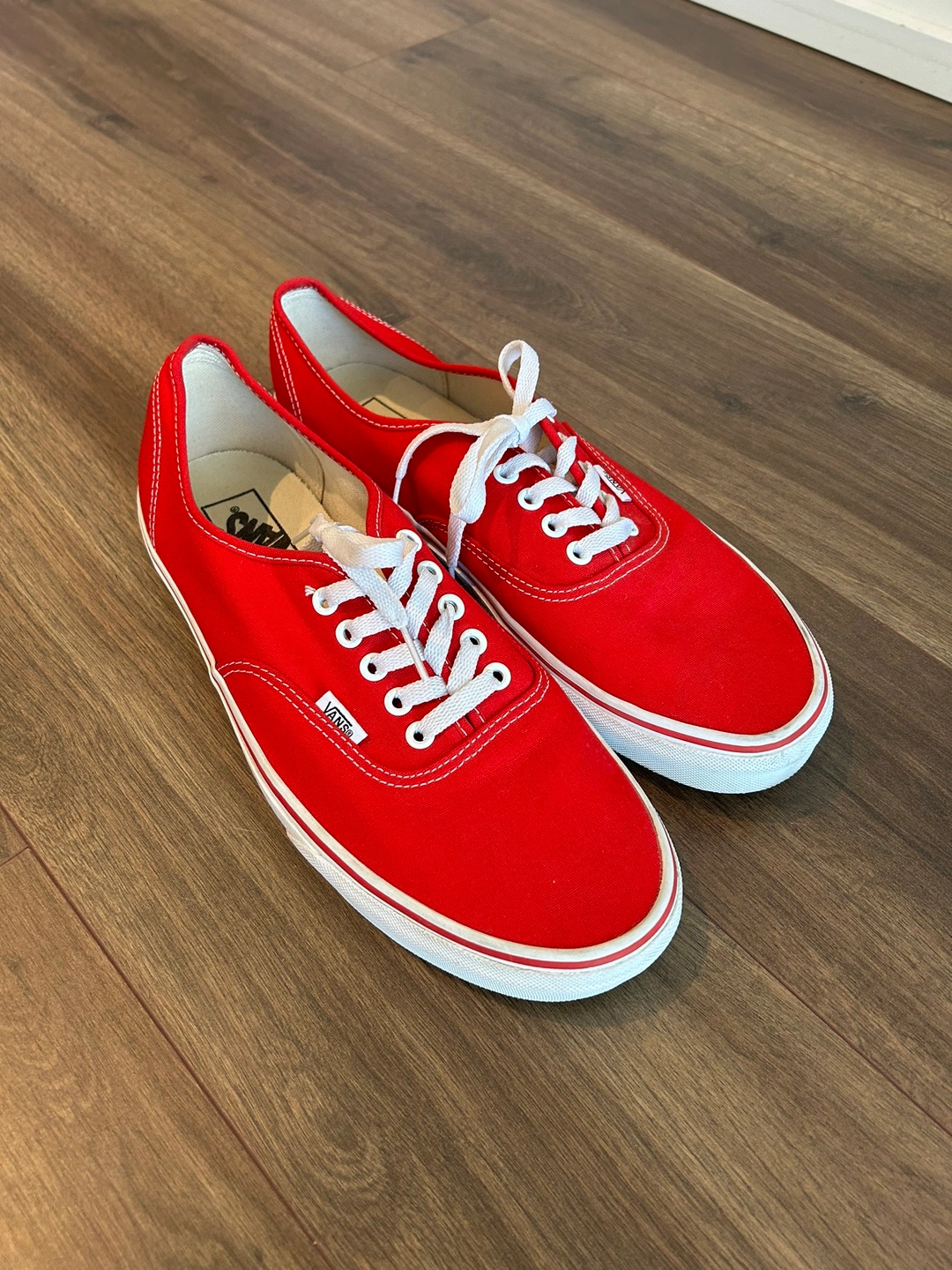 Red Vans Authentic sneakers, size 11. Worn only once but discovered they’re a size too big for me.