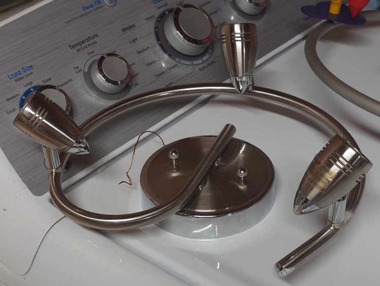 Easy to install, will save you plenty of money compared to retail store.The fixture has a circular base and a curved track.