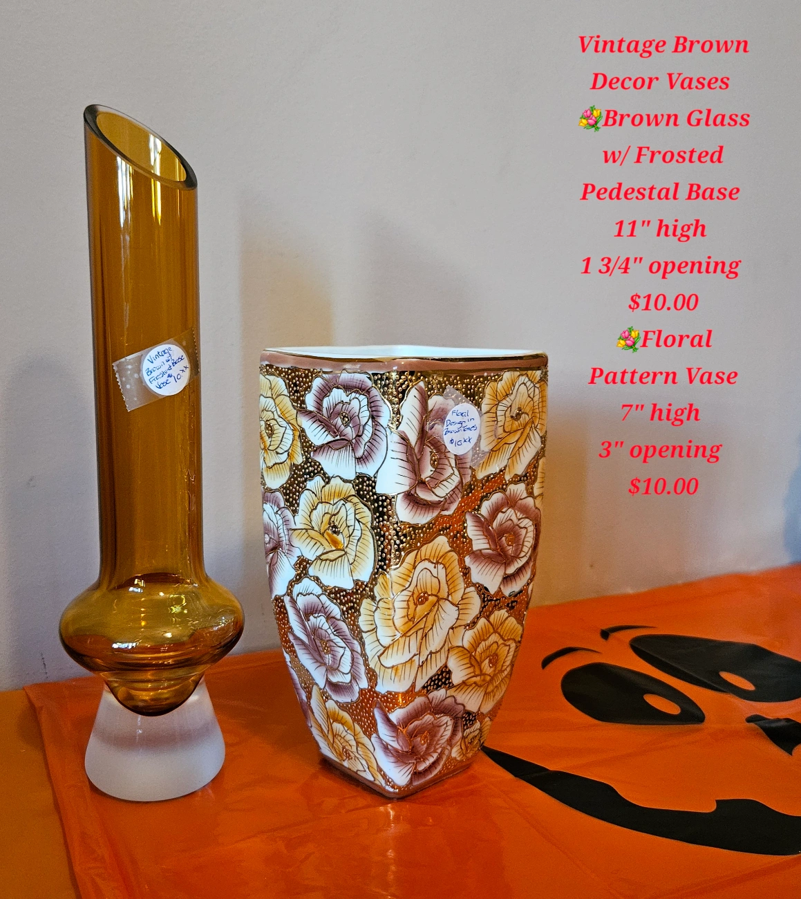 Brown Glass with Frosted Pedestal Base Bud Vase