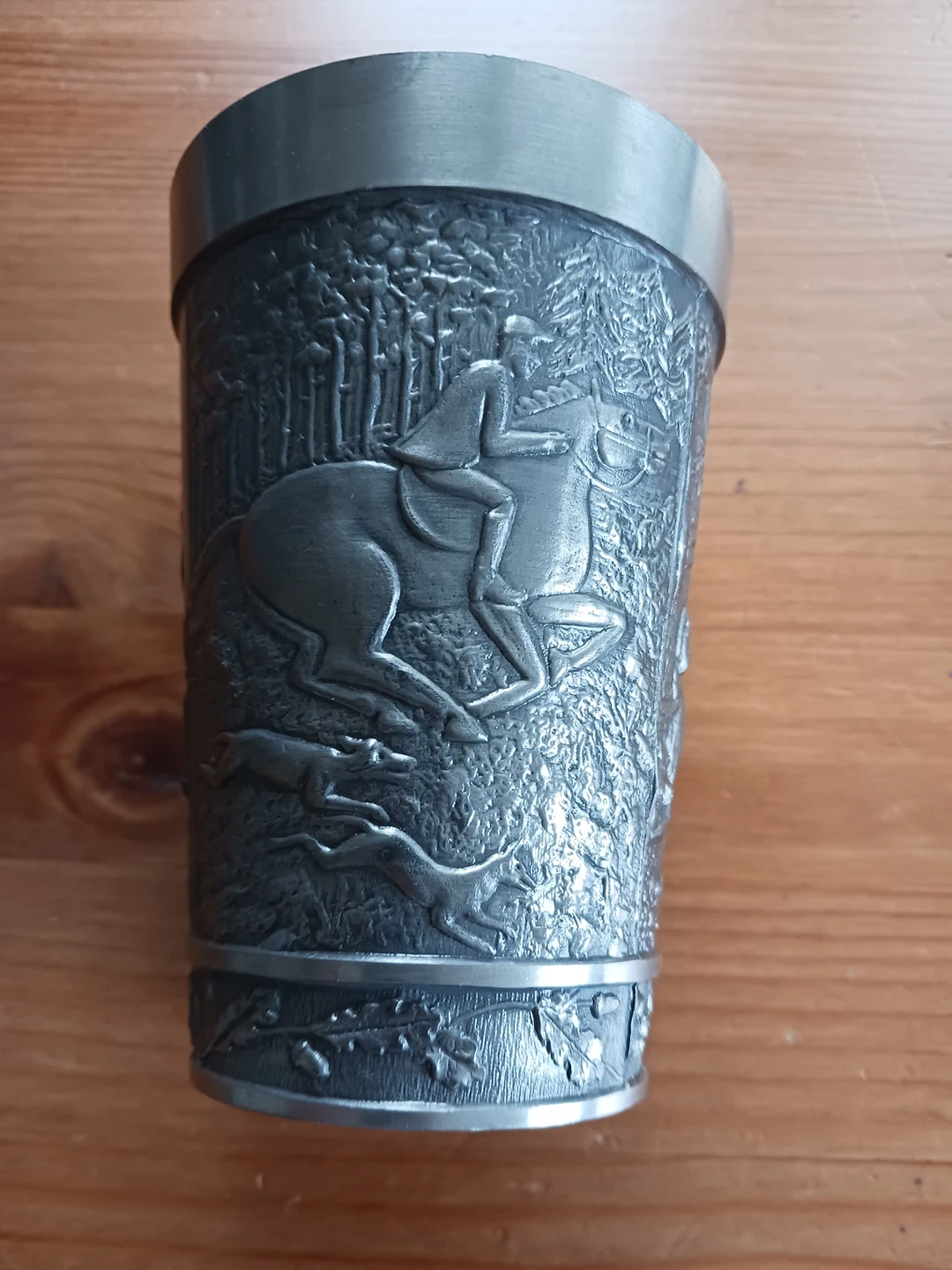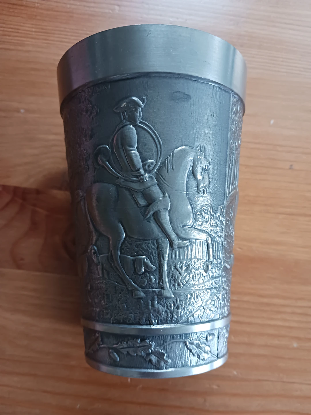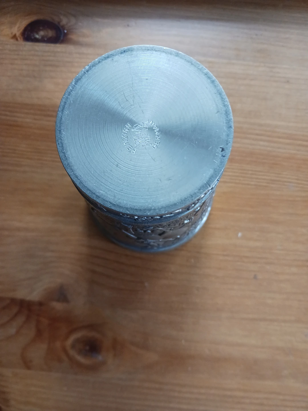 German Reinzinn (pure pewter) engraved drinking cup.