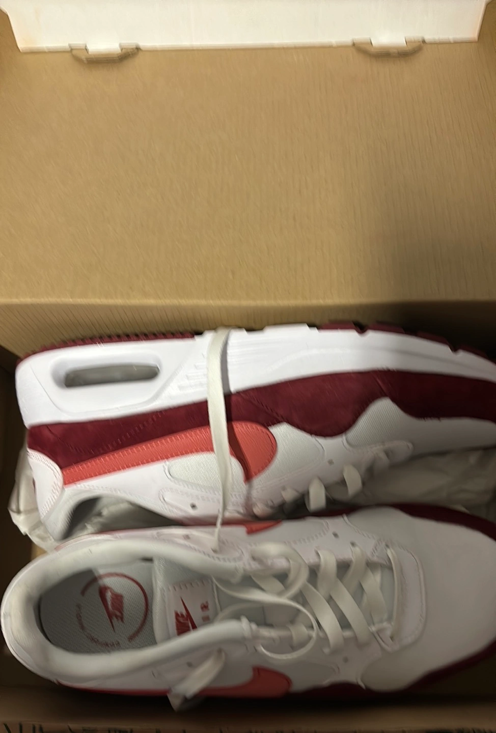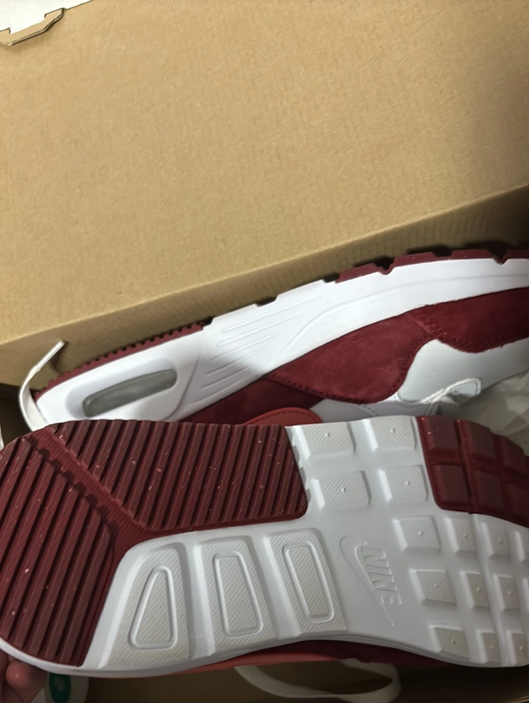 Nike Air Max 1 running shoes. White and burgundy colour. New in box, never worn. Fresh looking Never worn.