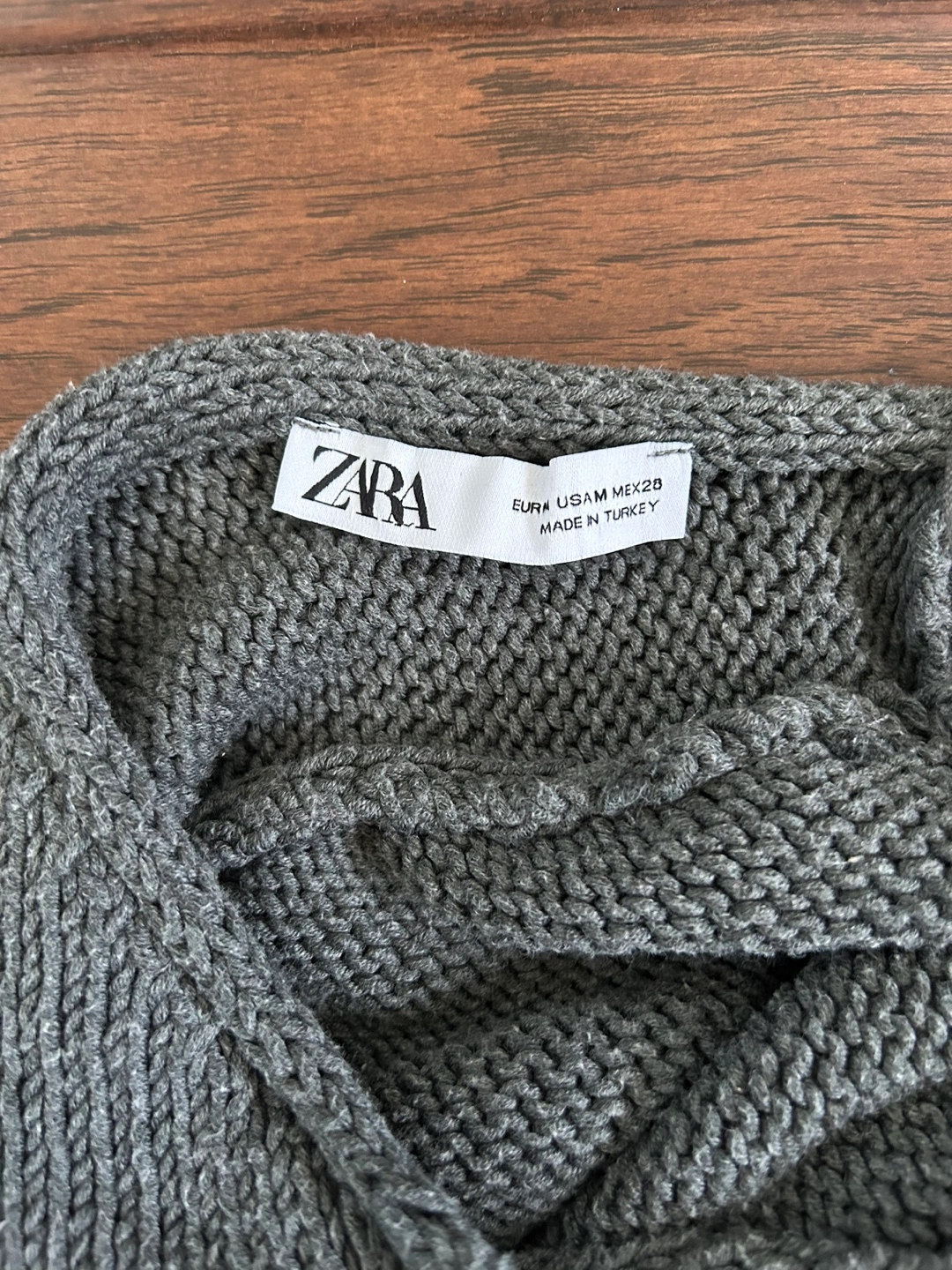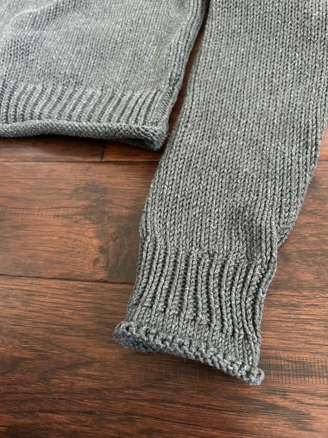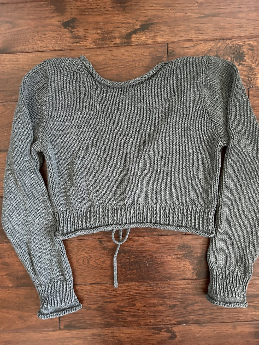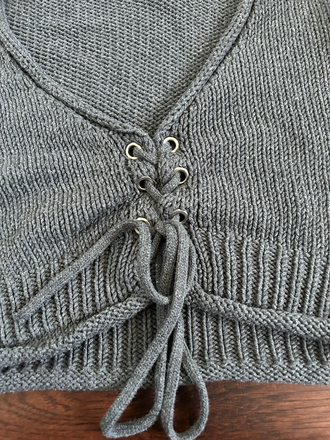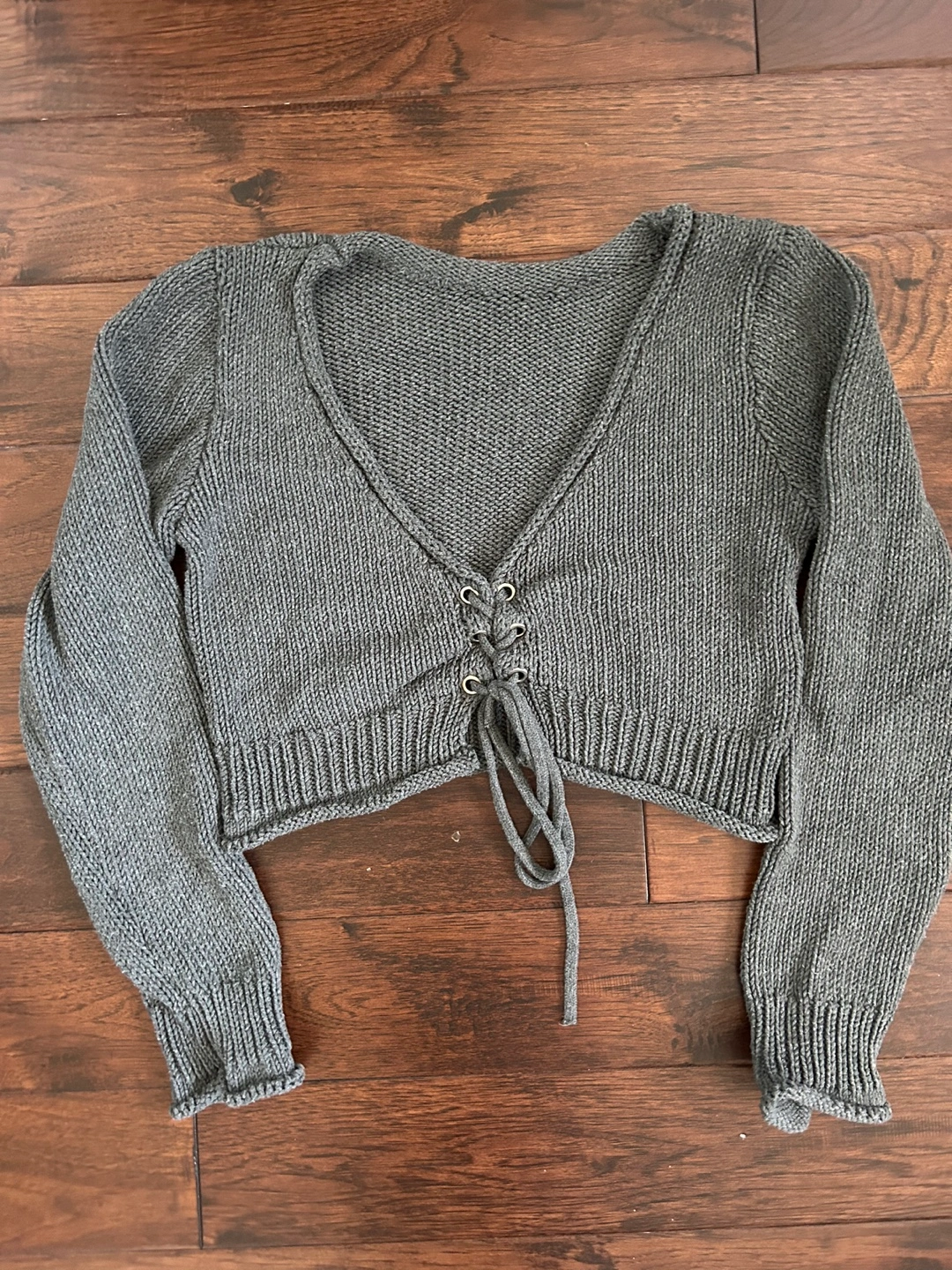 Grey knit crop top with long sleeves and a lace-up detail at the front. The sweater is in great condition.